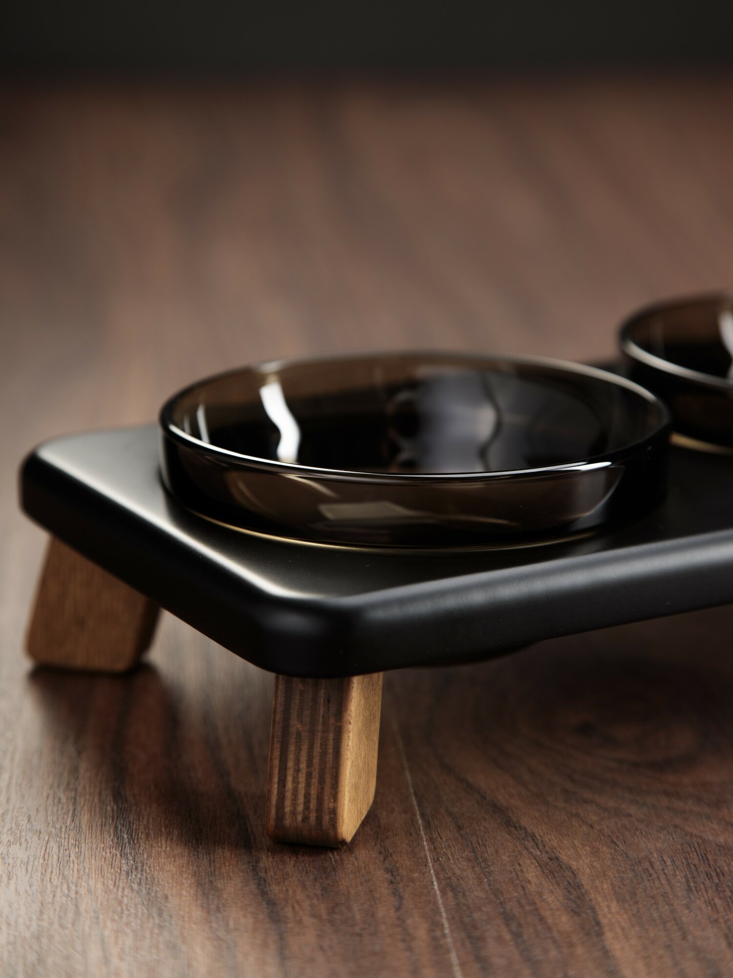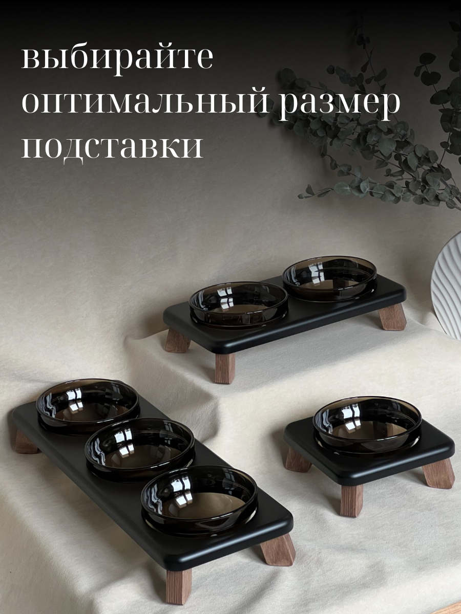 Миски на подставке для кошек и собак мелких пород 300 мл. черная тройная