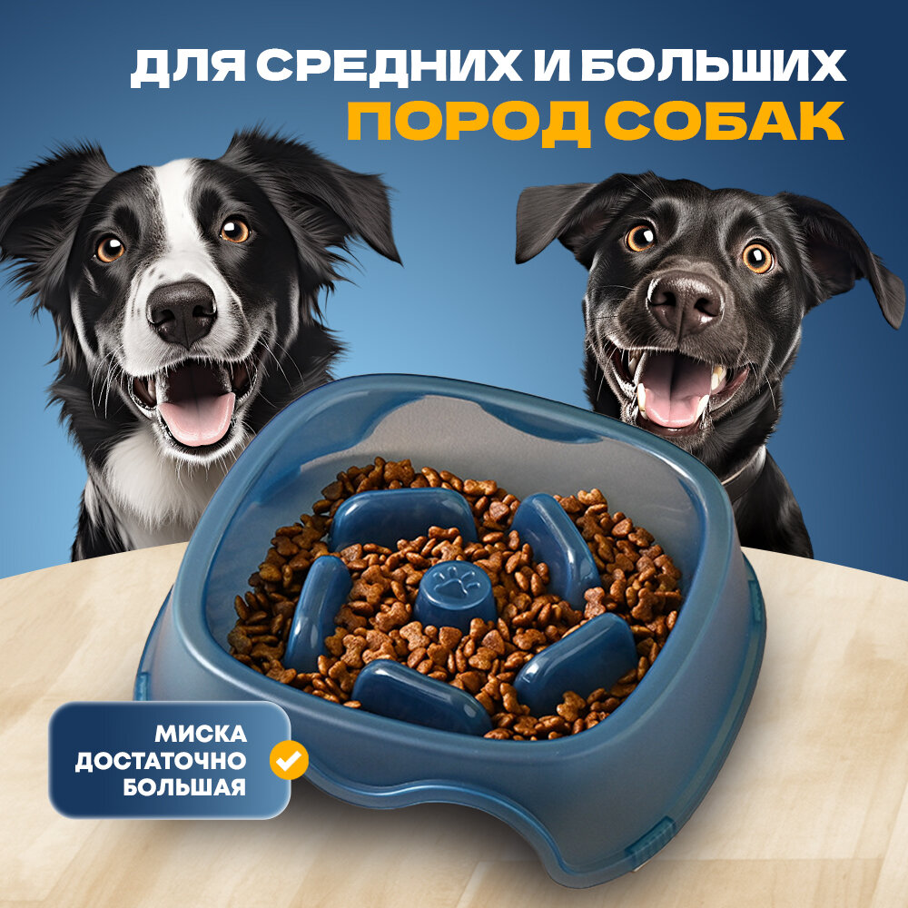 Миска для медленного кормления собак средних и крупных пород, синяя интересное: