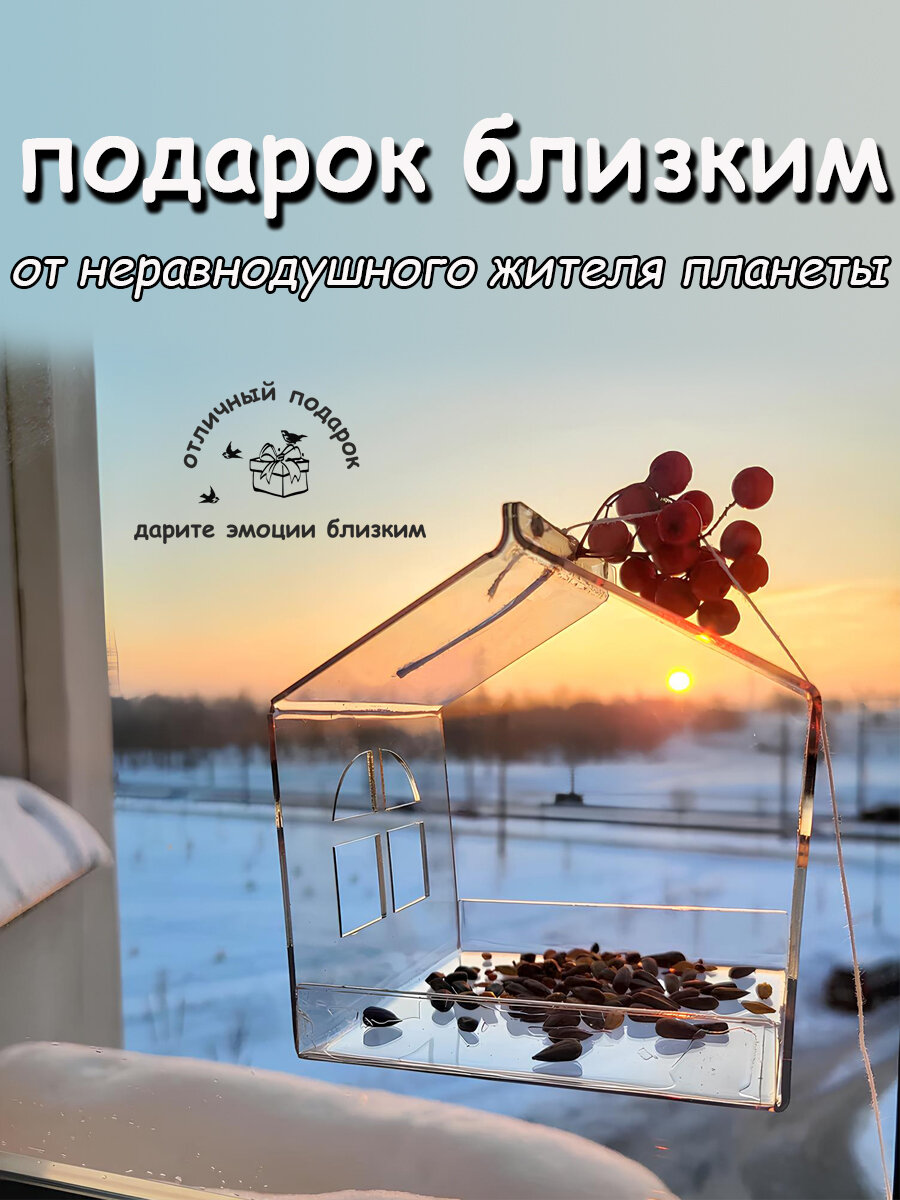 Прозрачная оконная кормушка для птиц, птичка невеличка интересное:
