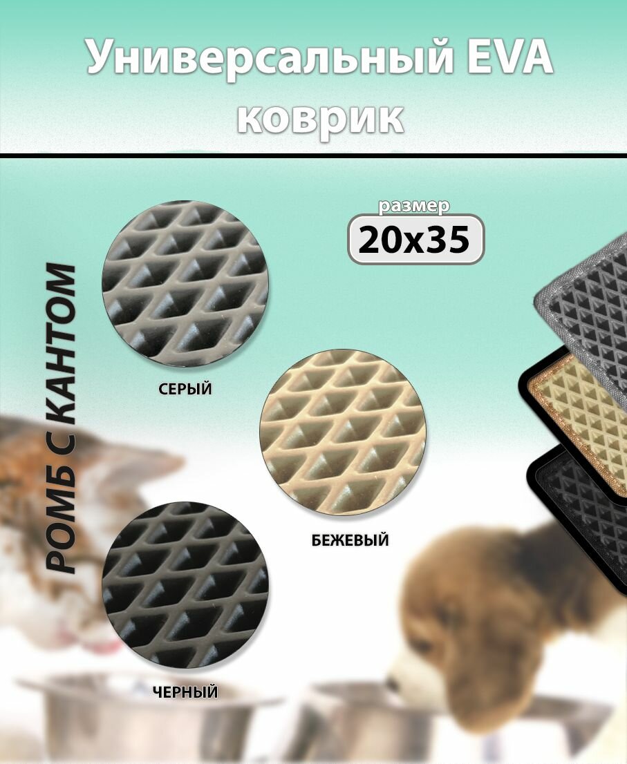 Коврик под миску для кошек и собак, ромб с кантом, 35х20 см бежевый