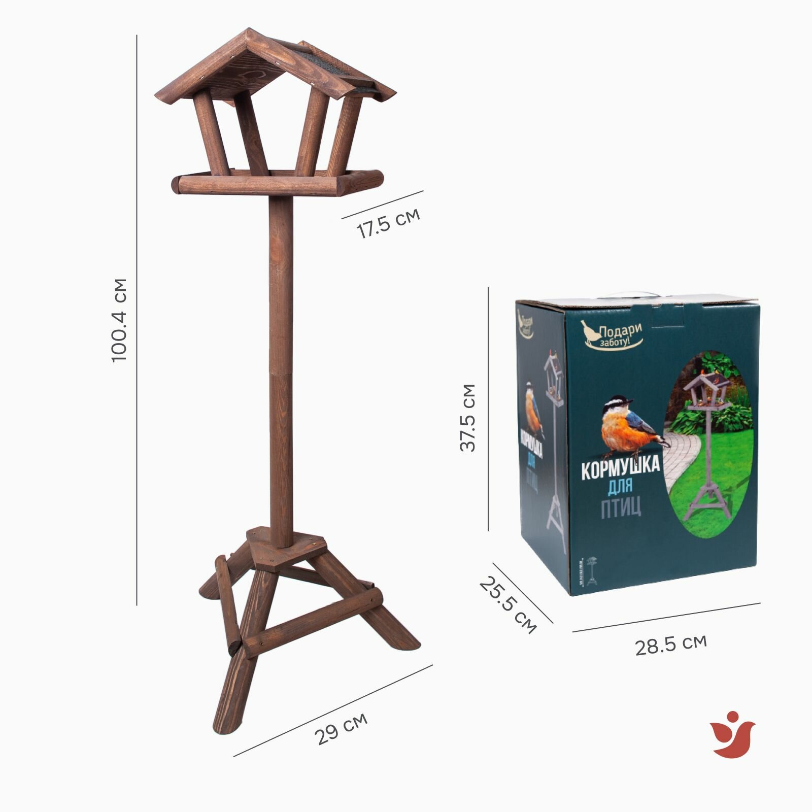 Кормушка для птиц уличная Амелия деревянная в подарочной упаковке для сада и дачи / садовый декор из массива сосны, Беларусь / коричневый интересное: