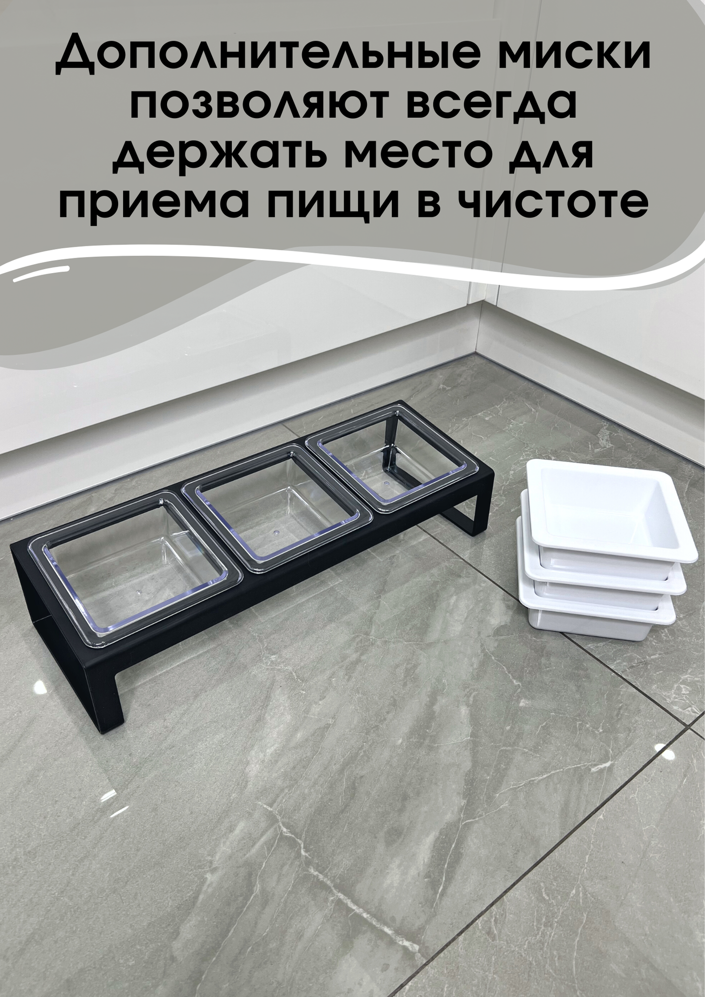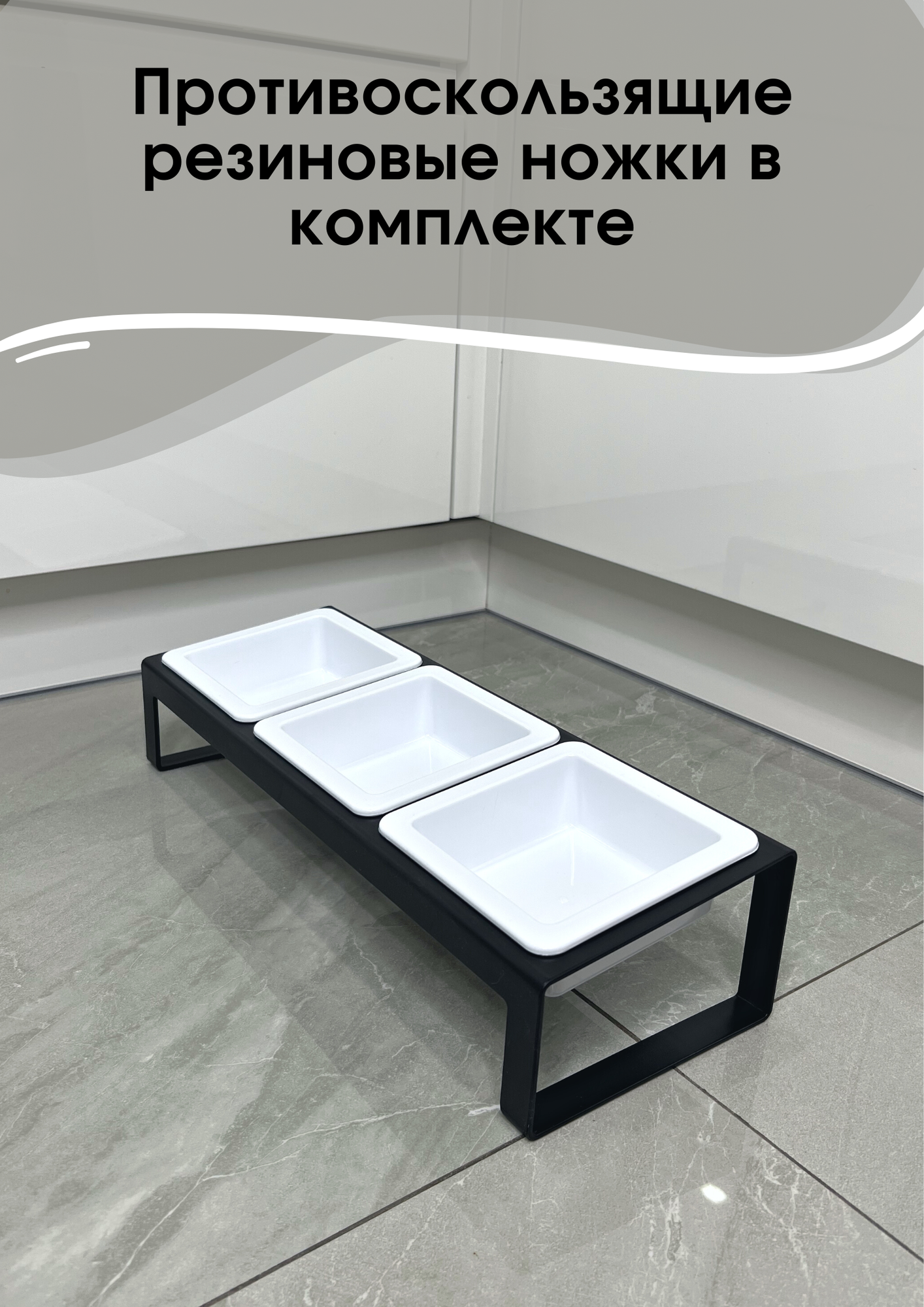 Миска для животных, кошек, собак тройная черная, сменные миски в комплекте интересное: