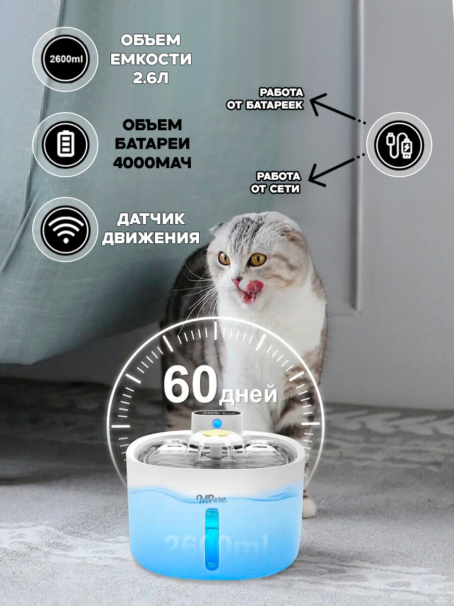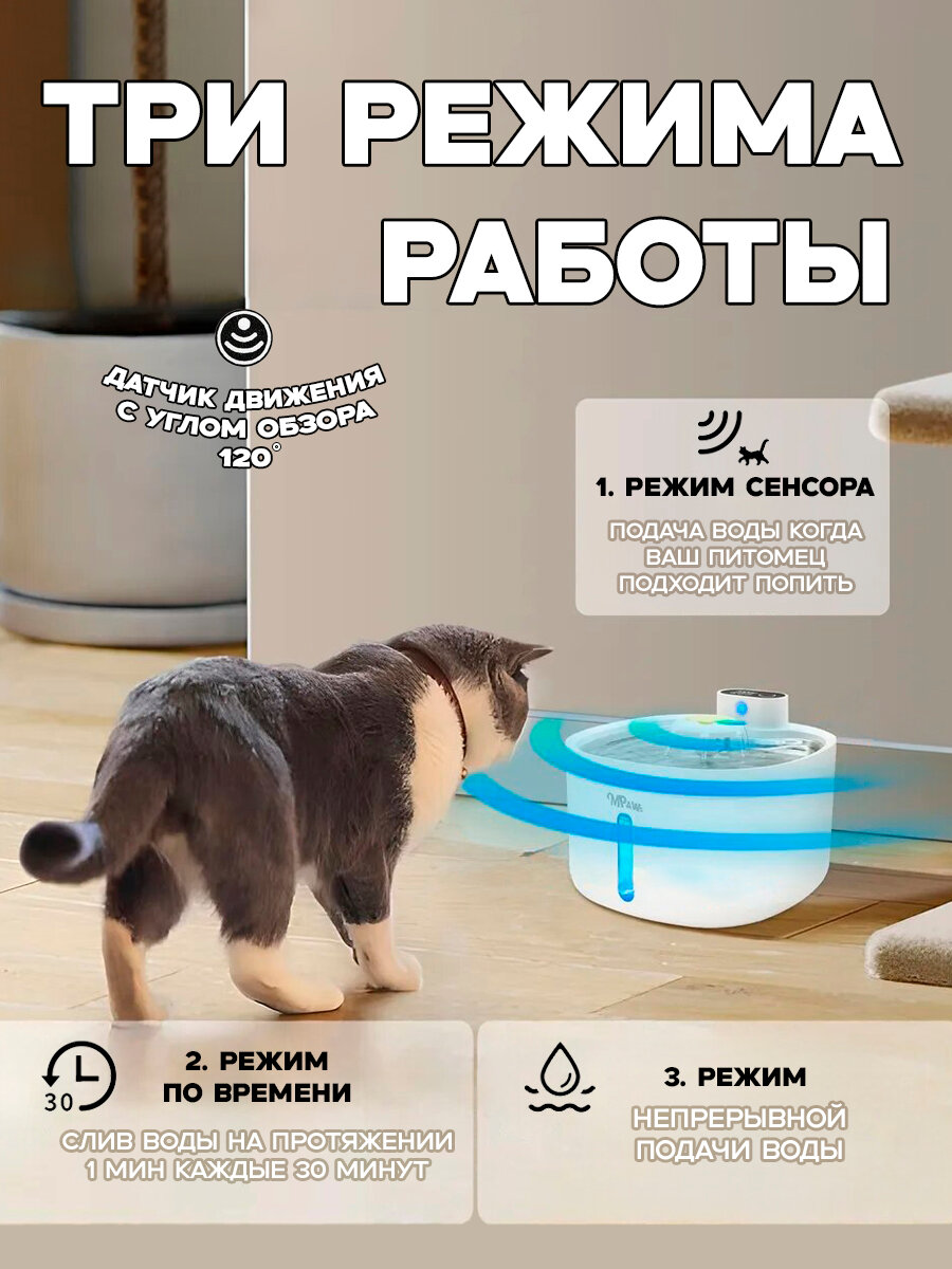 Автоматическая поилка для кошек/собак, с датчиком движения, безпроводная , 2,6л интересное:
