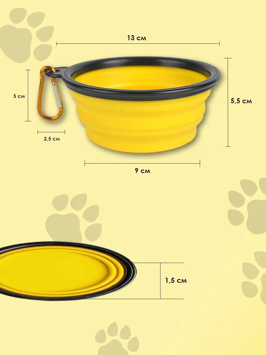 Миска для животных складная силиконовая, цвет желтый, 13х9 см, Pets & Friends PF-BOWL10-03 интересное: