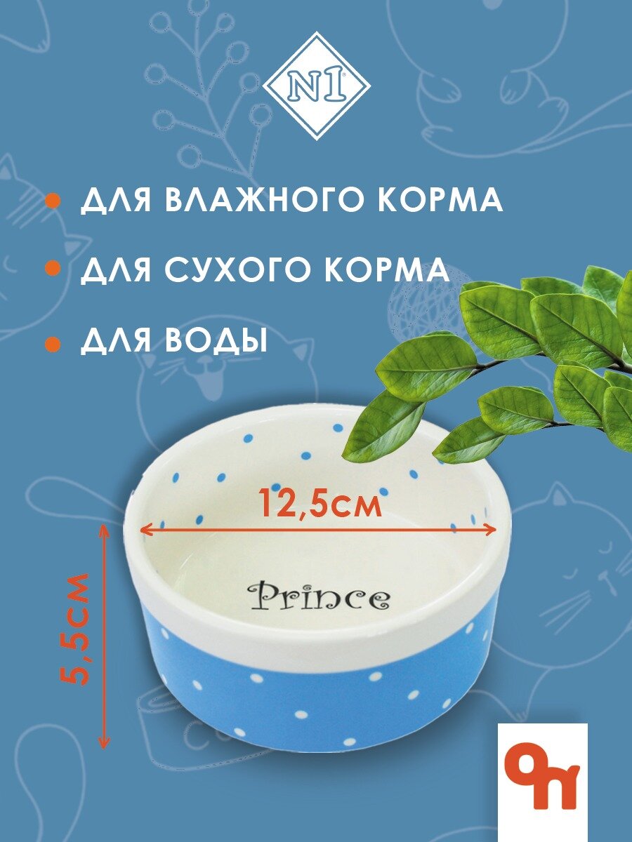 Миска керамическая с надписью "Принц" для кошек и собак, голубая, 13х5,5 см, 420 мл, N1 интересное:
