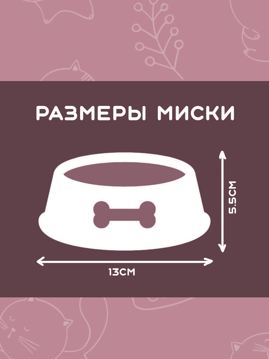 Миска керамическая белая с рисунком косточки для собак и кошек , 12,5х5 см, 440 мл, N1