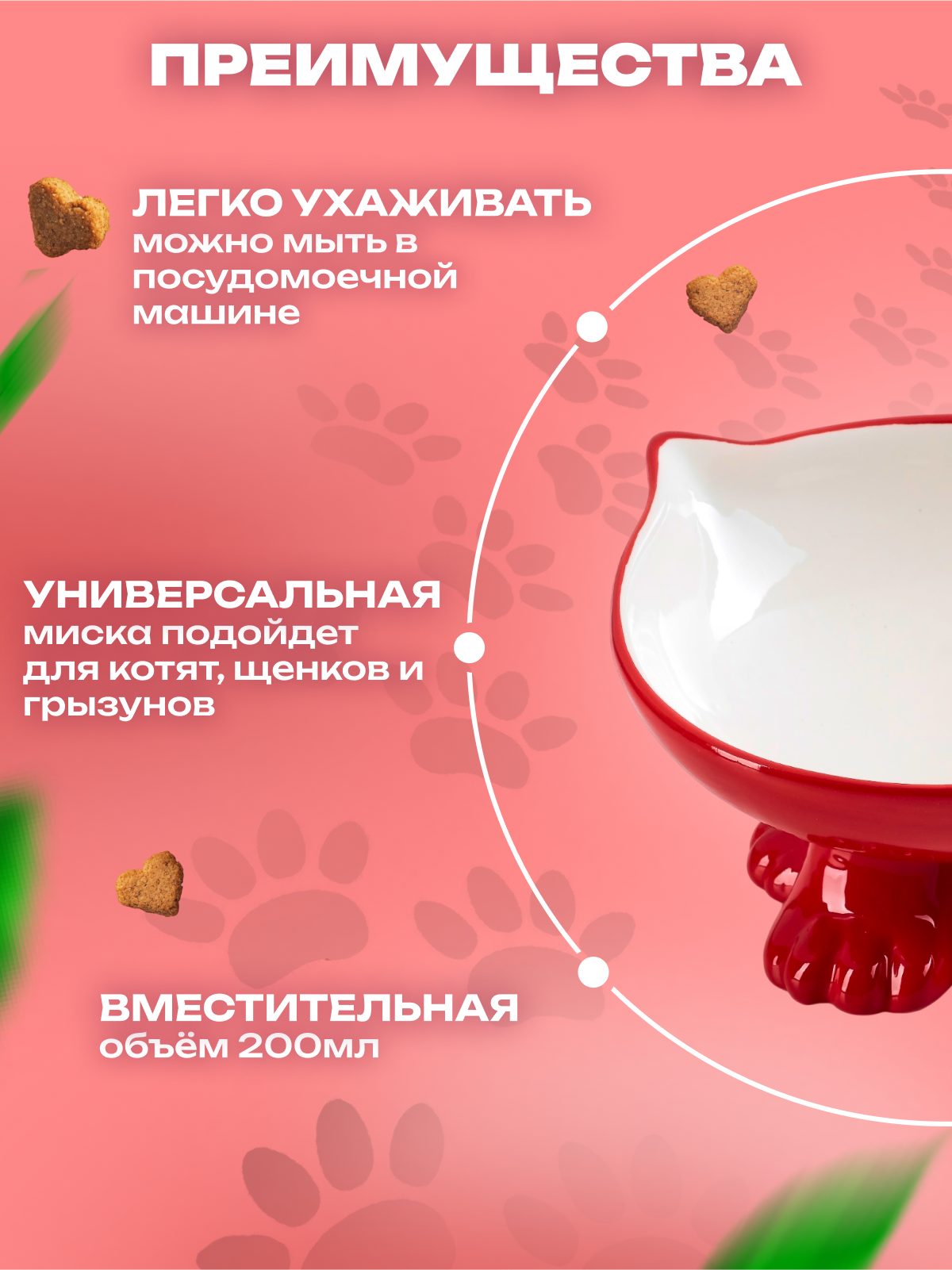 Миска керамическая "Киса" на подставке-лапках, 200 мл, 13 х 12 х 8 см, красная интересное: