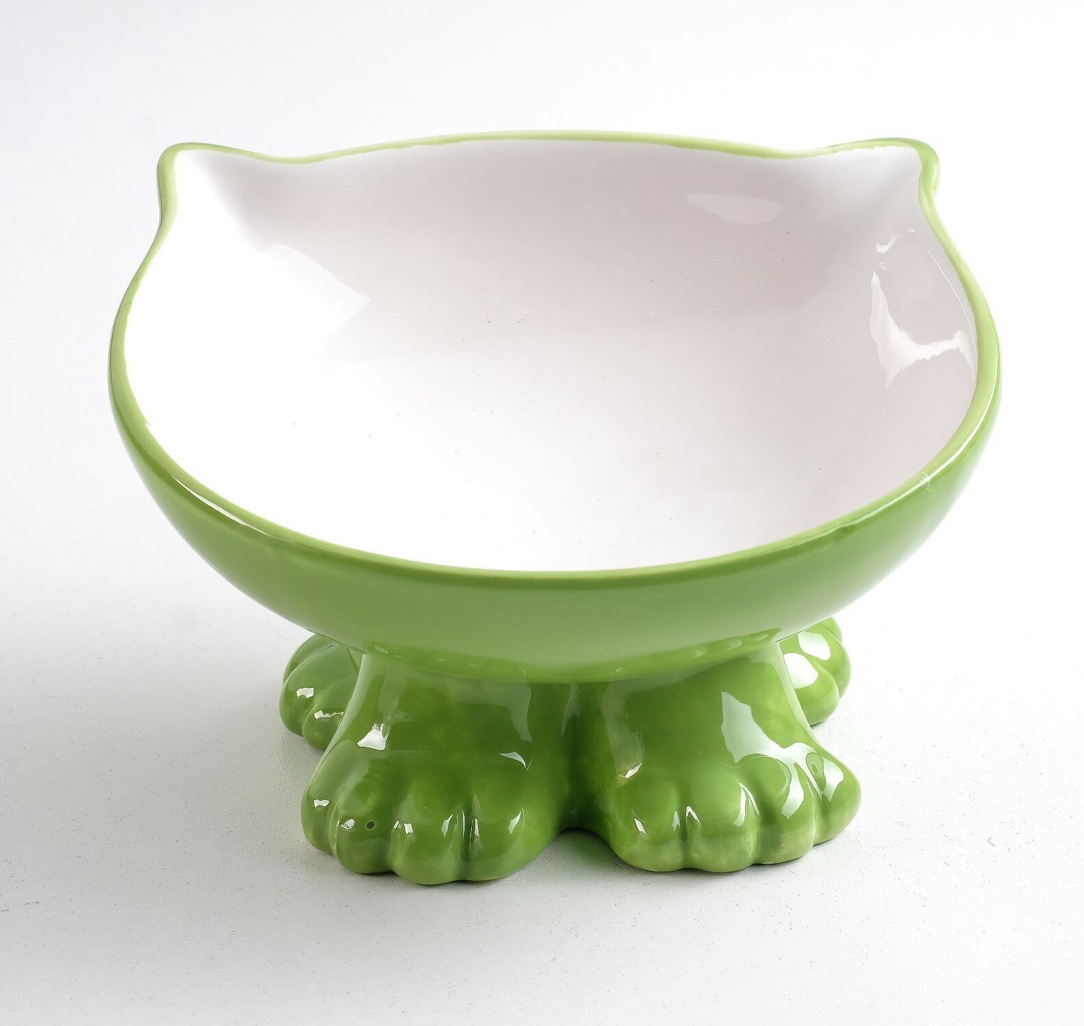 Миска керамическая "Киса" на подставке-лапках 200 мл 13 х 12 х 8 см, зелёная/белая интересное: