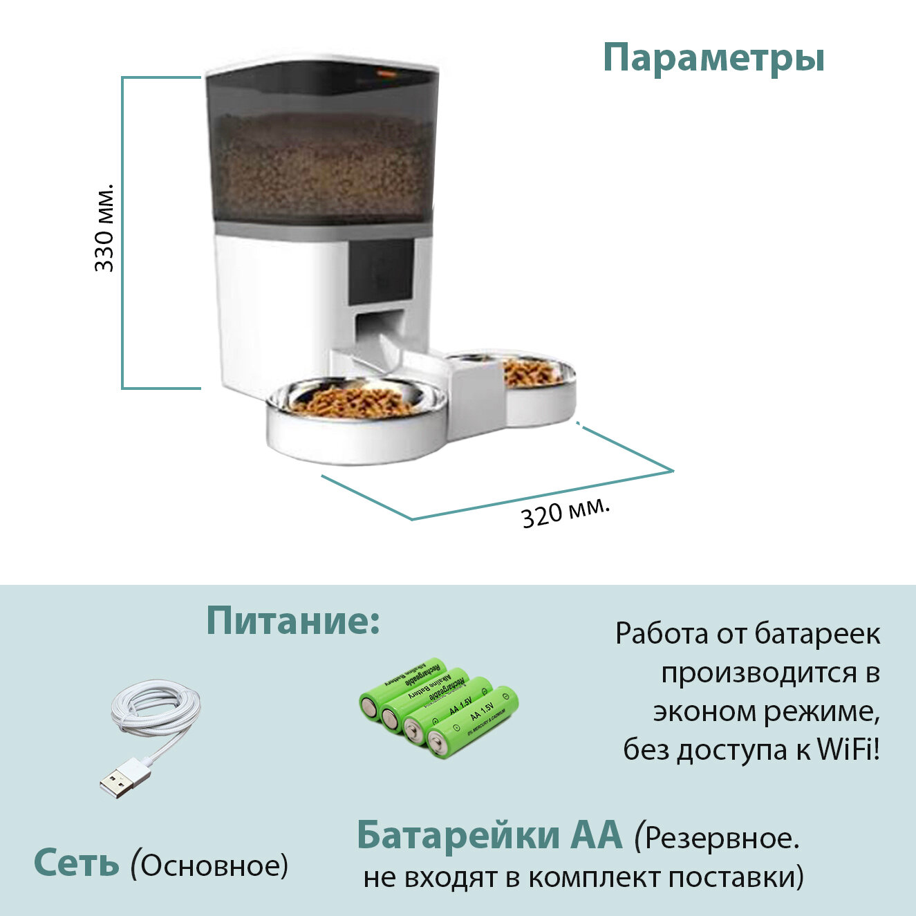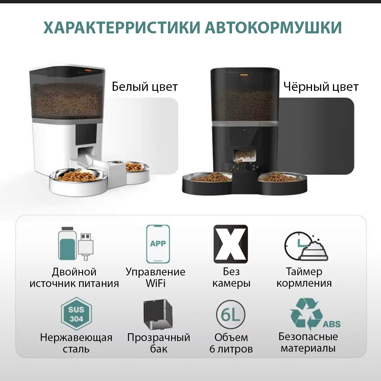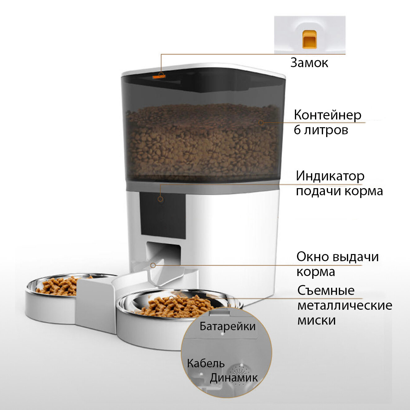 СохранитьКормушка автоматическая WiFi и таймером кормления на две миски 6 литров. Вай фай кормушка двойная для кошек. Цвет белый MY PET`S GADGETS интересное: