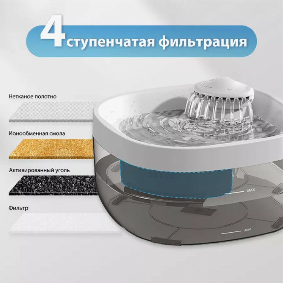 Автоматическая поилка для собак и кошек, поилка фонтан, большая поилка 7 литров, питание от USB, пластик, белый интересное: