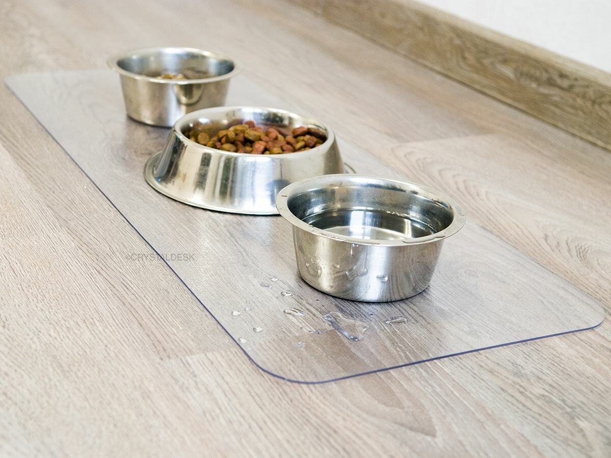 Прозрачный коврик под миску для кошек и собак CrystalDesk 38х80 см. Гибкое стекло ПВХ 1.5 мм. Для животных
