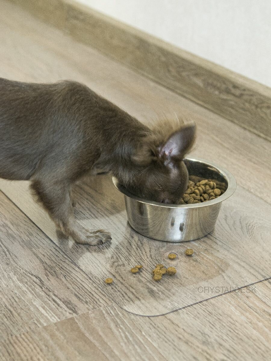 Прозрачный коврик под миску для кошек и собак CrystalDesk 38х80 см. Гибкое стекло ПВХ 1.5 мм. Для животных