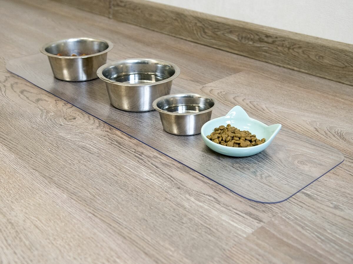 Прозрачный коврик под миску для кошек и собак CrystalDesk 38х80 см. Гибкое стекло ПВХ 1.5 мм. Для животных