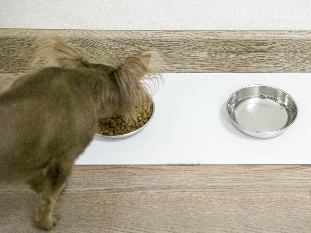 Белый коврик под миску для кошек и собак CrystalDesk 22х80 см. Гибкое стекло ПВХ 1.5 мм. Для животных