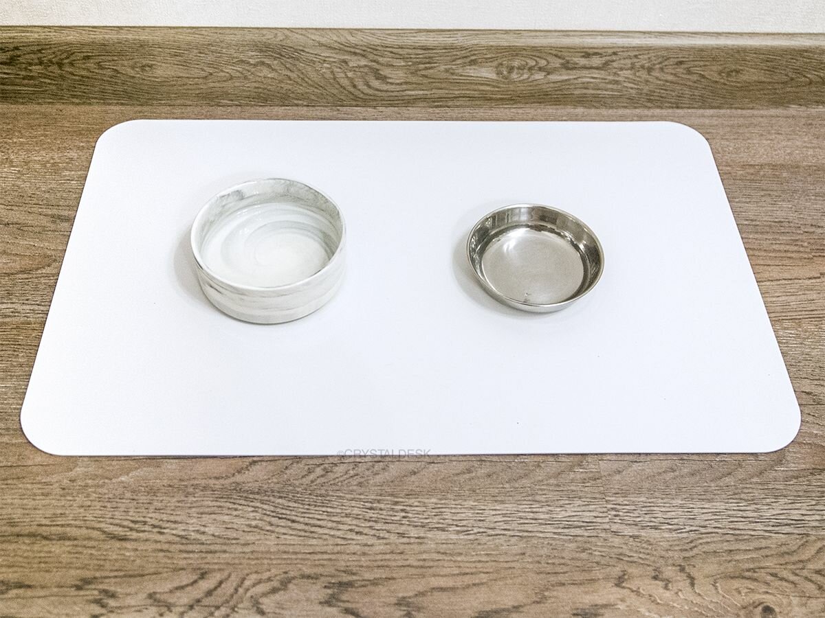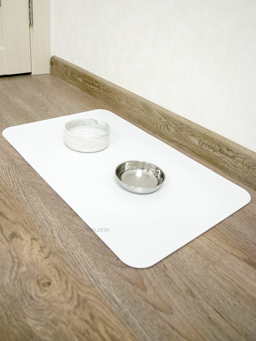 Белый коврик под миску для кошек и собак CrystalDesk 22х40 см. Гибкое стекло ПВХ 1.5 мм. Для животных