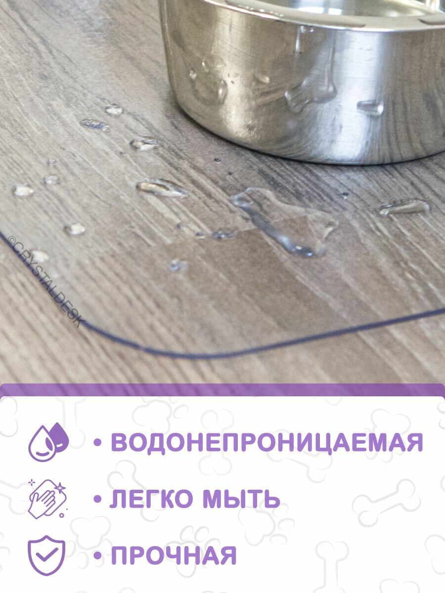 Прозрачный коврик под миску для кошек и собак CrystalDesk 38х80 см. Гибкое стекло ПВХ 1.5 мм. Для животных