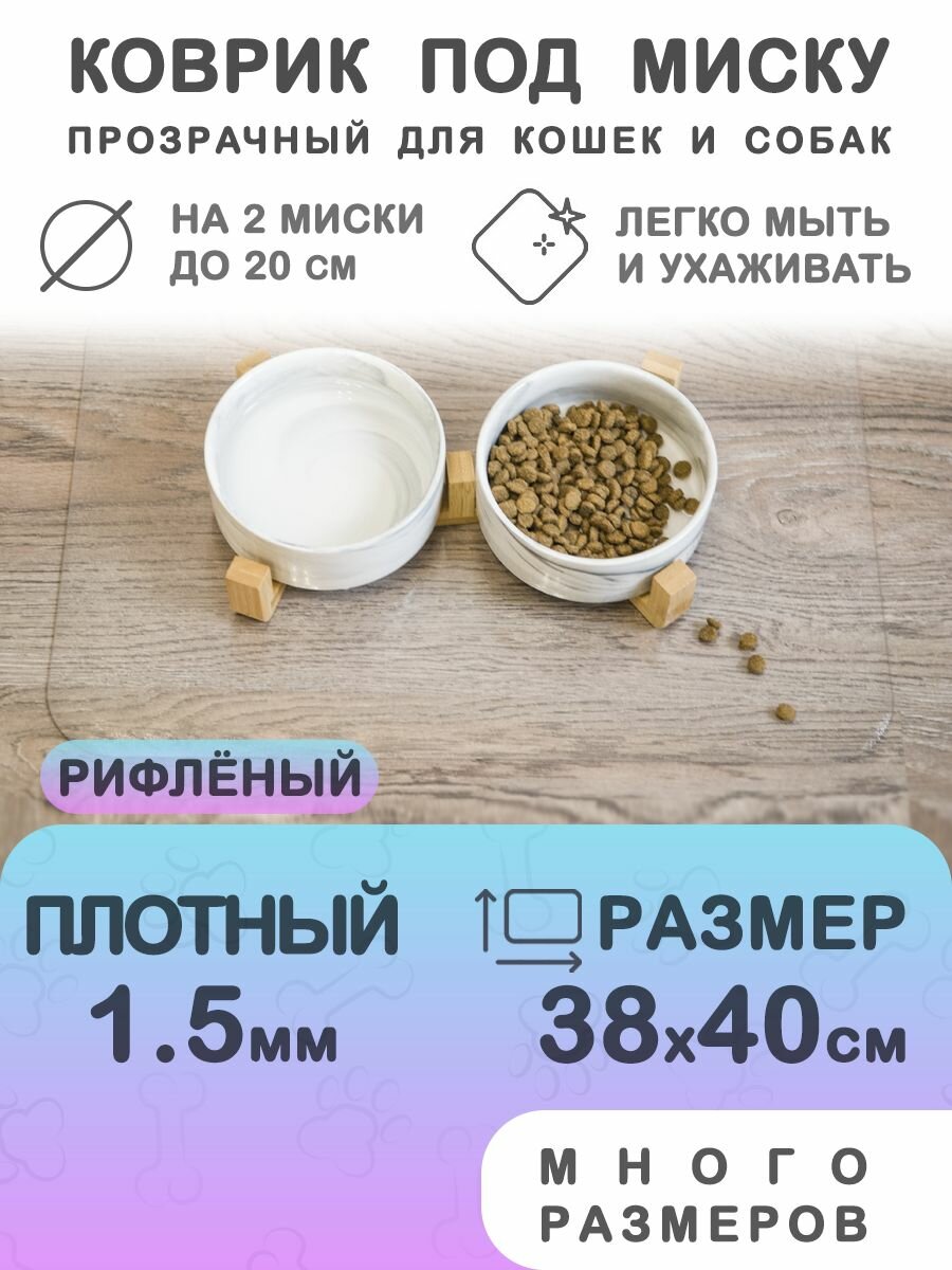 Купить Прозрачный коврик под миску для кошек и собак CrystalDesk 38х40 см. Гибкое стекло ПВХ 1.5 мм. Для животных