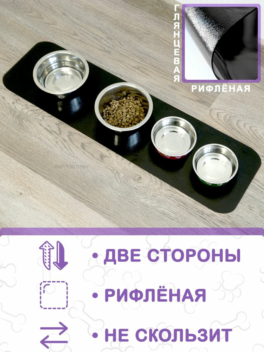 Купить Черный коврик под миску для кошек и собак CrystalDesk 22х60 см. Гибкое стекло ПВХ 1.5 мм. Для животных