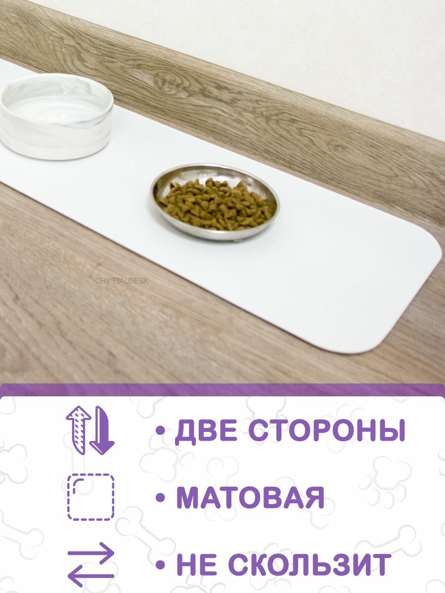 Белый коврик под миску для кошек и собак CrystalDesk 22х60 см. Гибкое стекло ПВХ 1.5 мм. Для животных