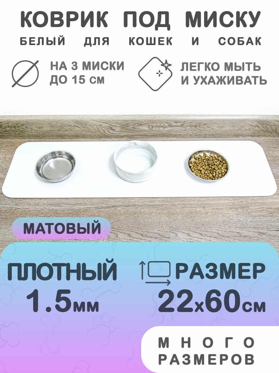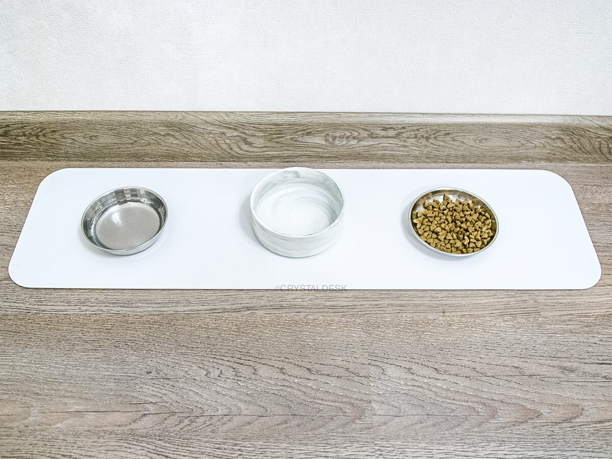 Купить Белый коврик под миску для кошек и собак CrystalDesk 22х60 см. Гибкое стекло ПВХ 1.5 мм. Для животных