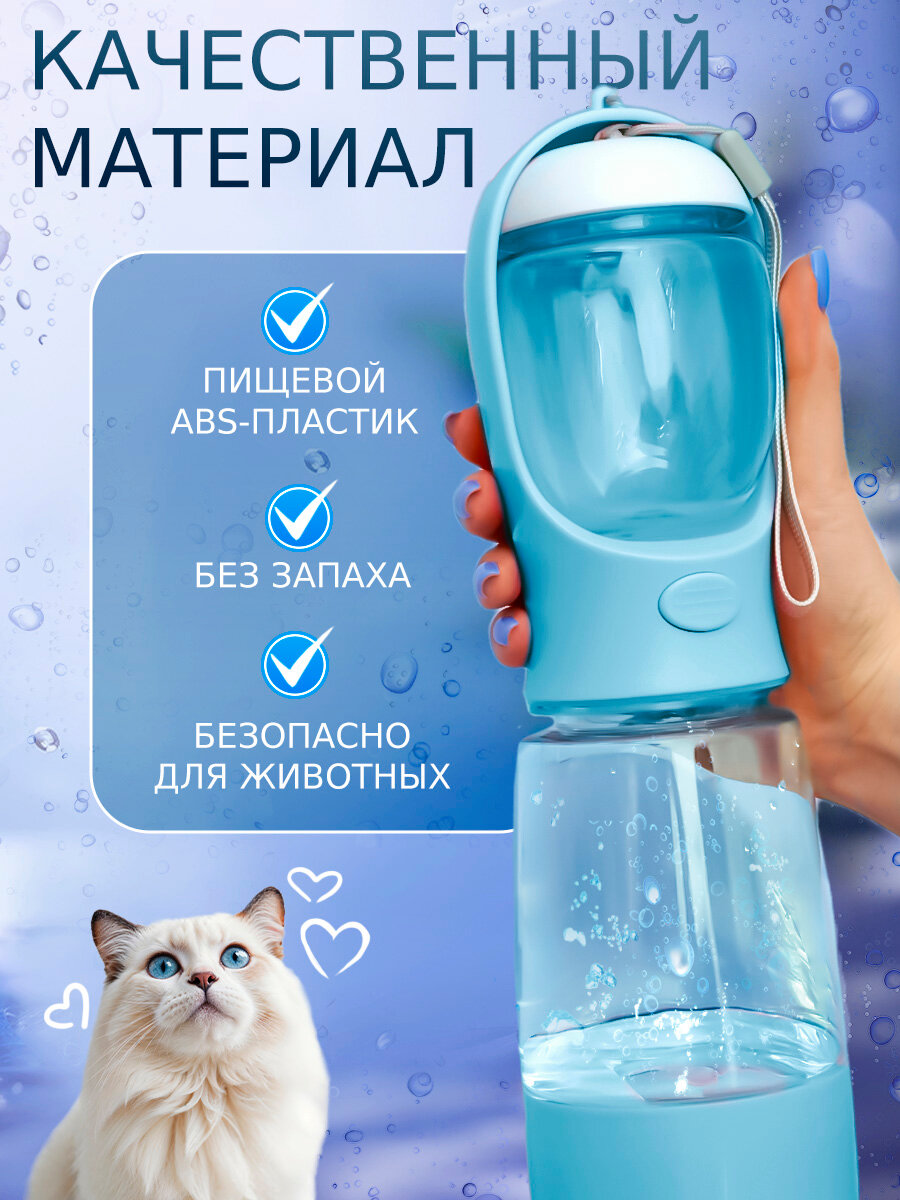 Купить Поилка и кормушка прогулочная для собак, кошек N 3-1 голубая, дорожная бутылка непроливайка уличная, портативная 3 в 1
