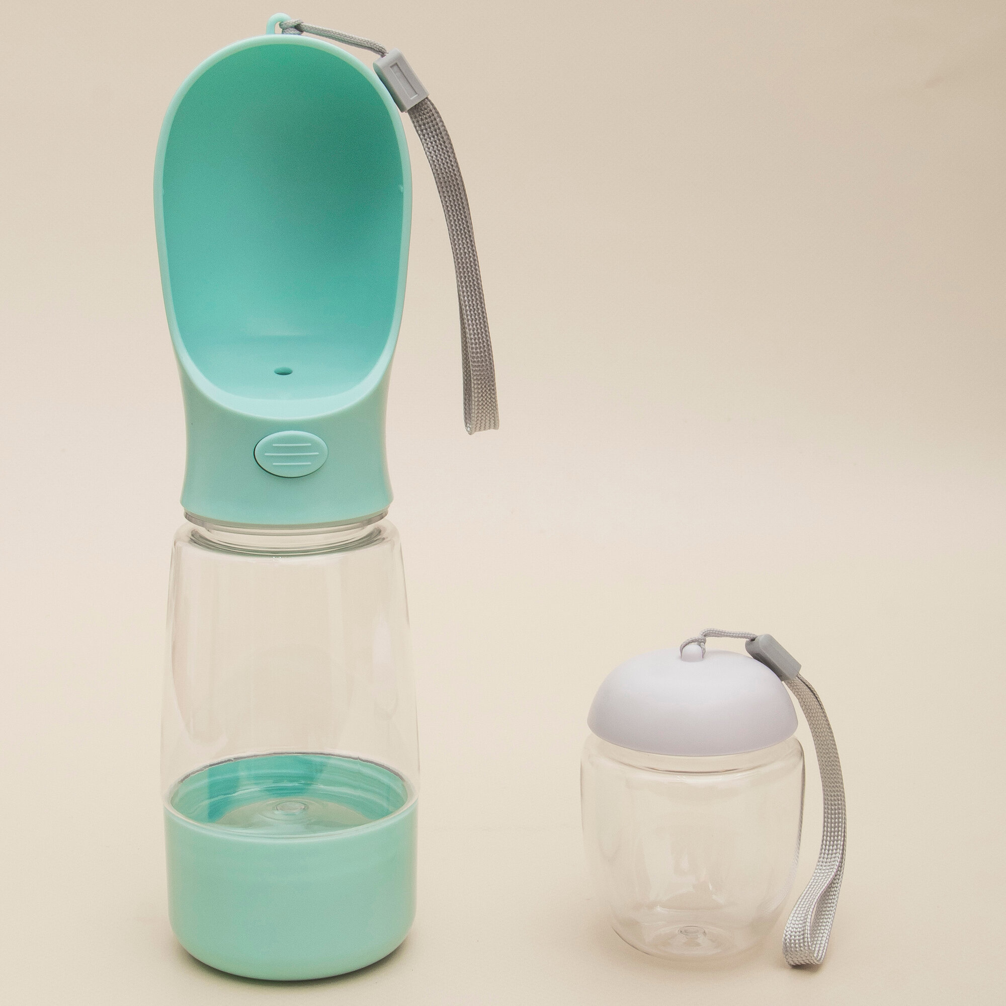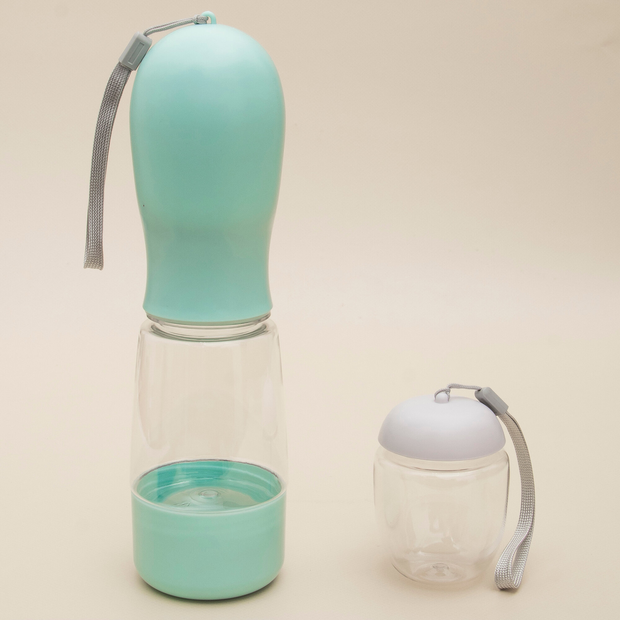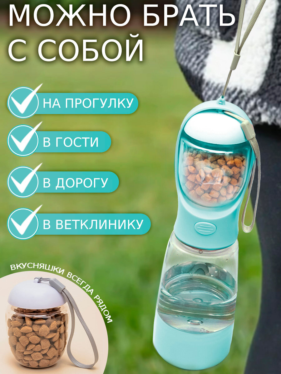 Поилка и кормушка прогулочная для собак, кошек N 2-1 бирюзовая, дорожная бутылка непроливайка уличная, портативная 2 в 1