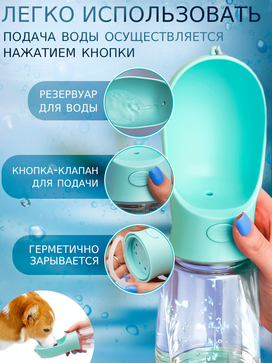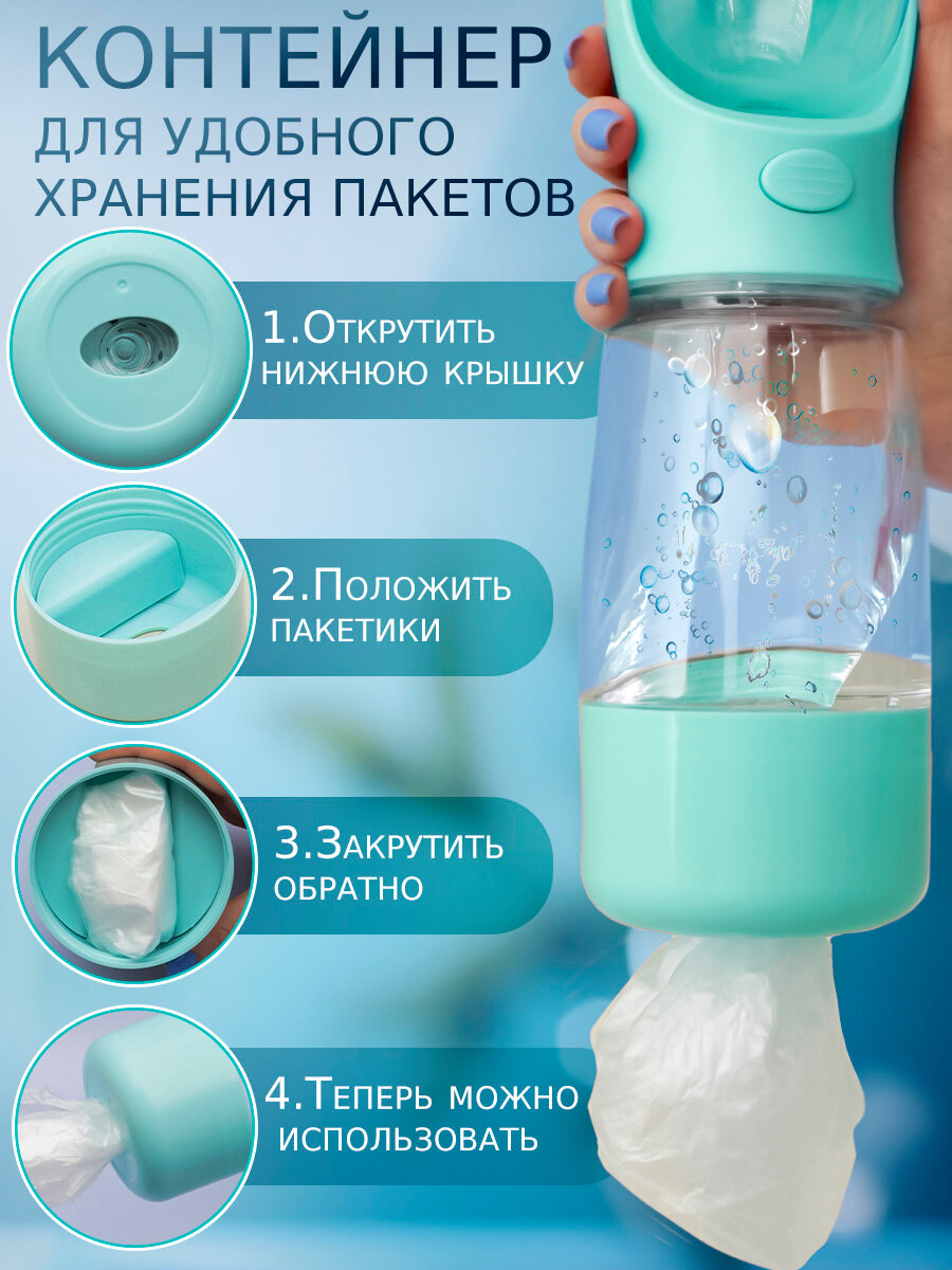 СохранитьПоилка и кормушка прогулочная для собак, кошек N 3-2 бирюзовая, дорожная бутылка непроливайка уличная, портативная 3 в 1 интересное: