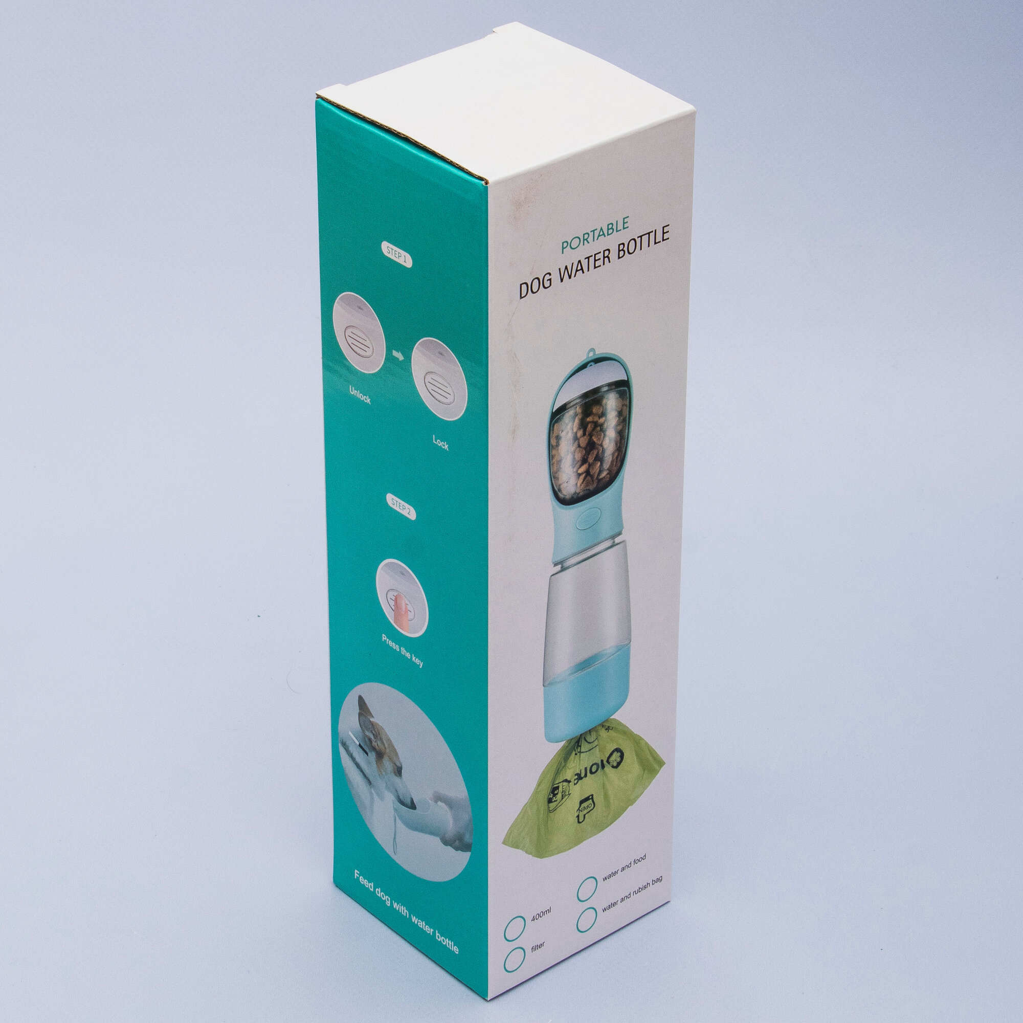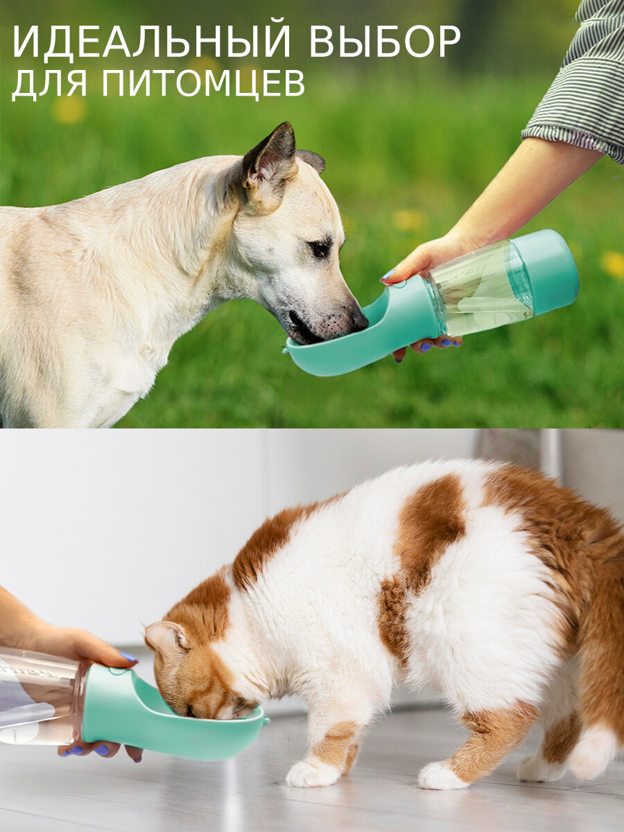 Купить Поилка и кормушка прогулочная для собак, кошек N 3-2 бирюзовая, дорожная бутылка непроливайка уличная, портативная 3 в 1