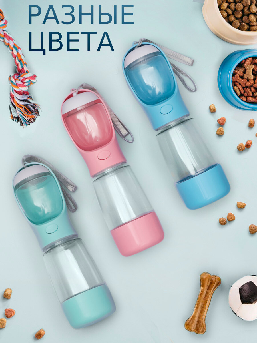 Поилка и кормушка прогулочная для собак, кошек N 2-3 розовая, дорожная бутылка непроливайка уличная, портативная 2 в 1
