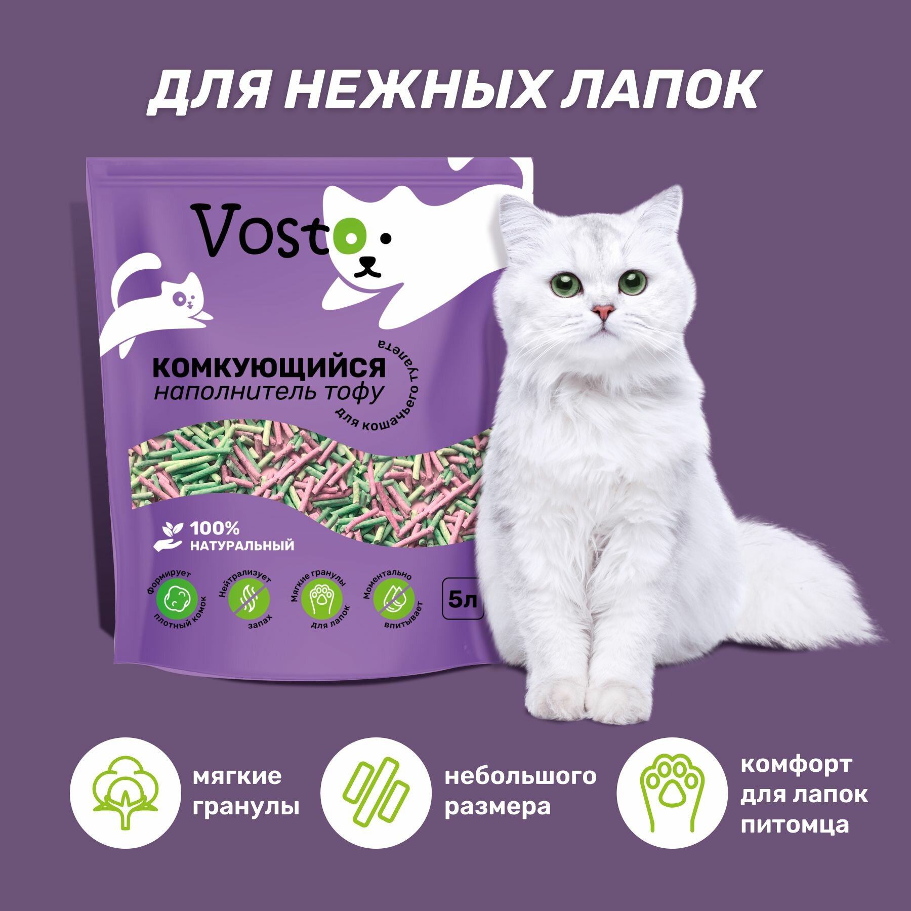 Наполнитель Vosto "Тофу", для кошачьего лотка, водорастворимые гранулы, 5 л