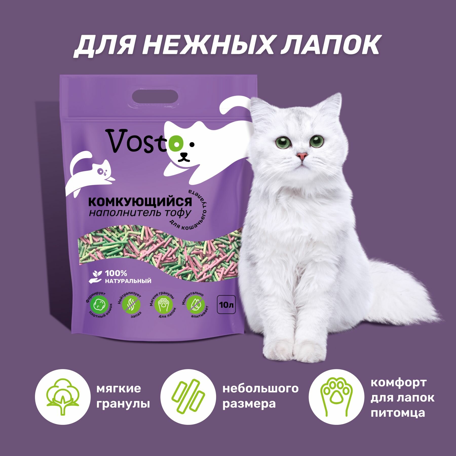 Купить Наполнитель Vosto Тофу, для кошек, комкующийся, соевый, без пыли, 10л