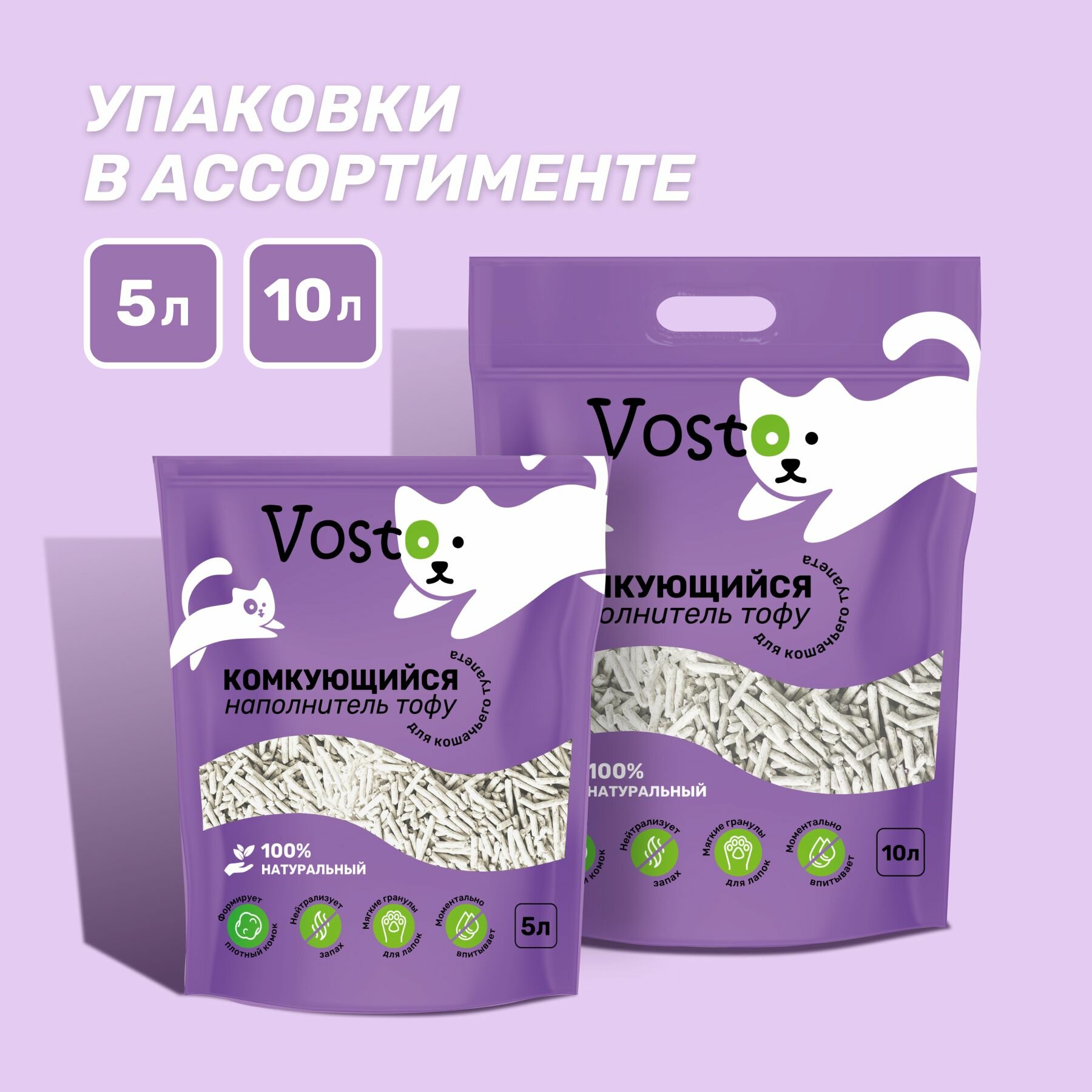 Наполнитель Vosto "Тофу", для кошачьего лотка, водорастворимые гранулы, 5 л
