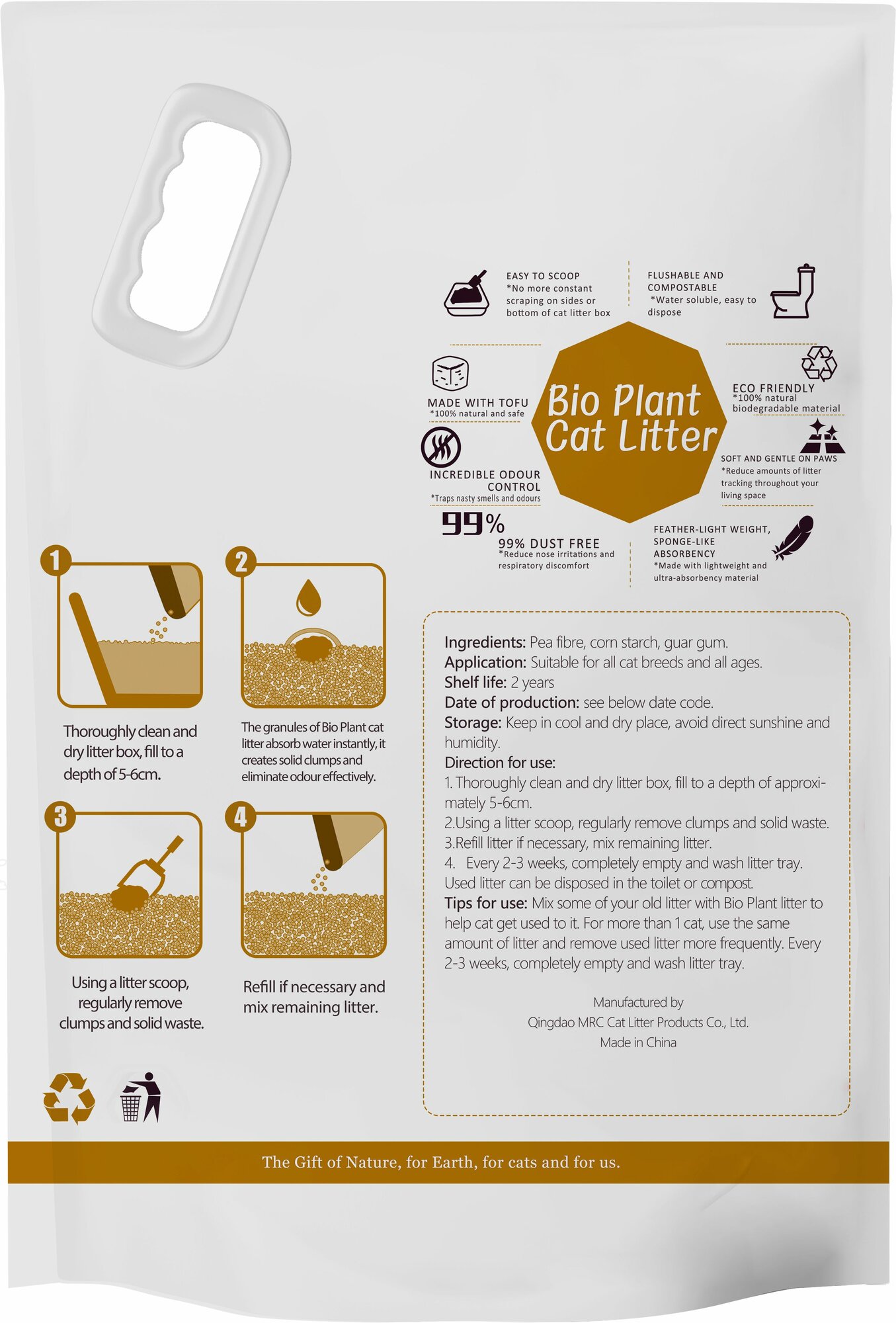 Наполнитель для кошачьего туалета, TOOCATTISH, Оригинал, 20 кг, 48 л, тофу, комкующийся, соевый, смываемый