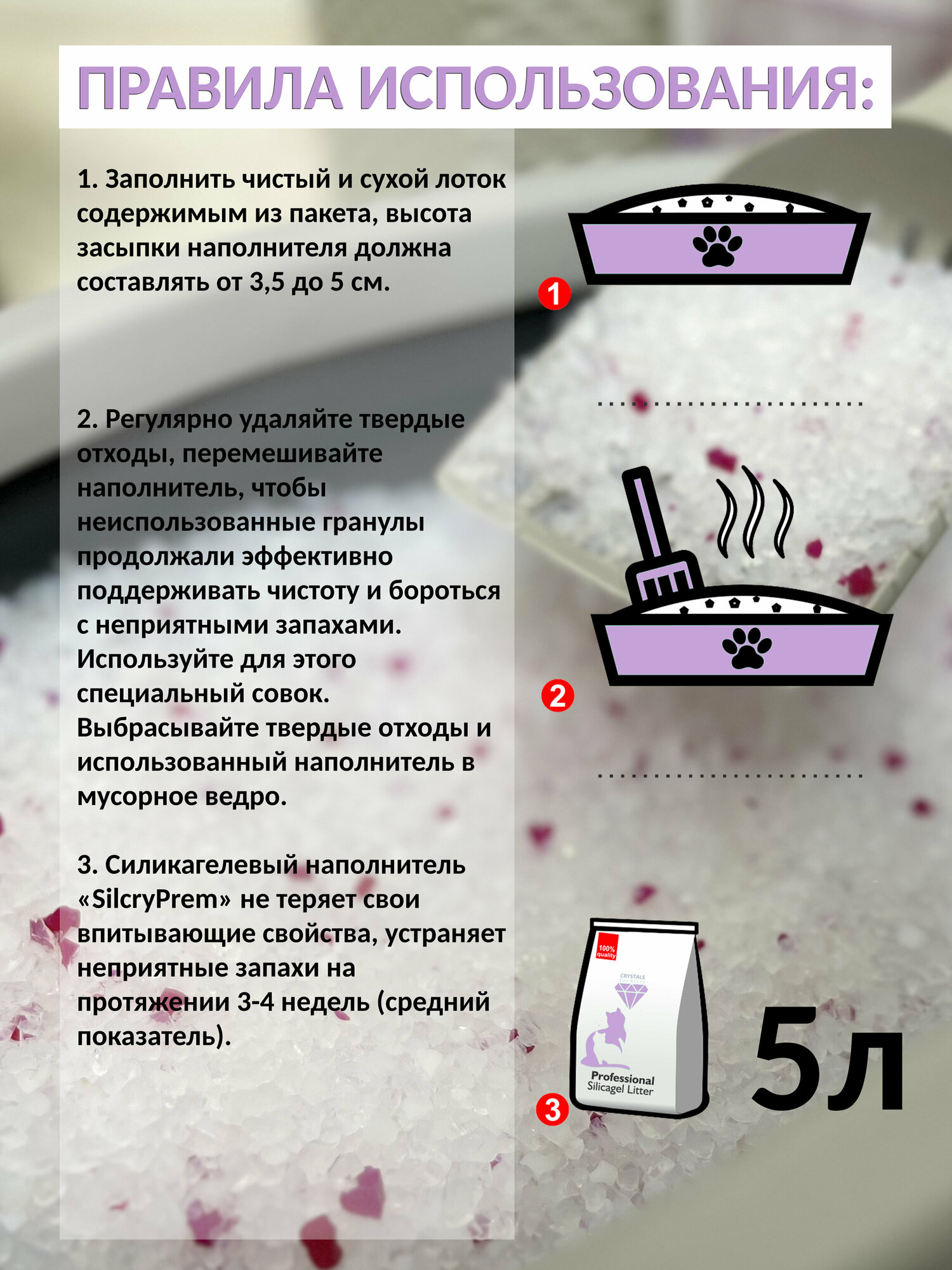 Купить Cиликагелевый наполнитель для кошачьих туалетов "SilcryPrem" Lavender 5,0 л - Лаванда