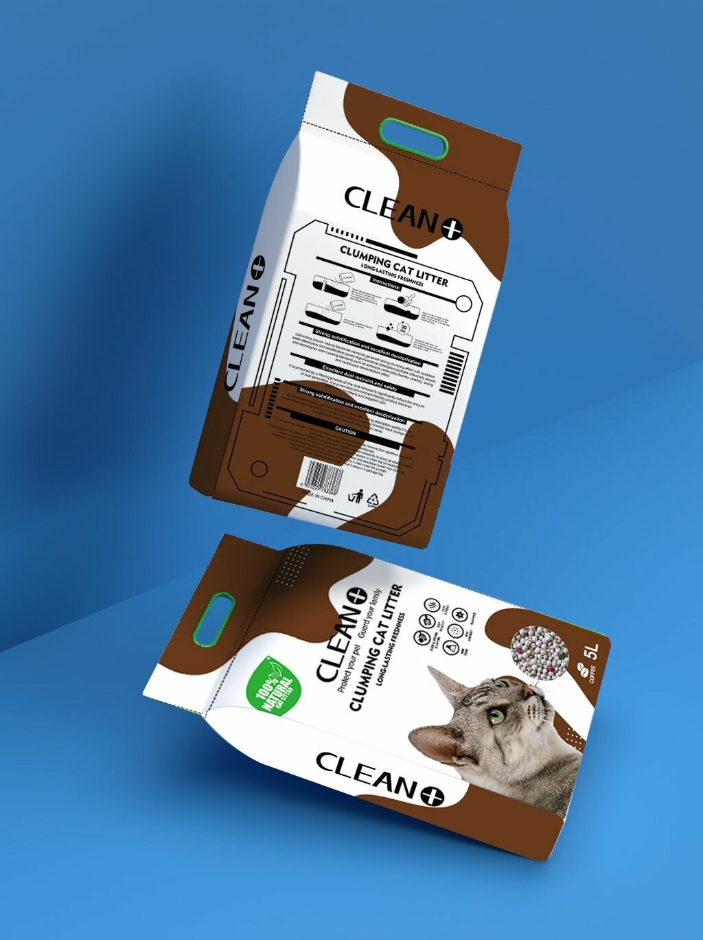 Купить Наполнитель бентонитовый премиум-класса для кошачьего туалета комкующийся с запахом кофе Clean+ 5 л