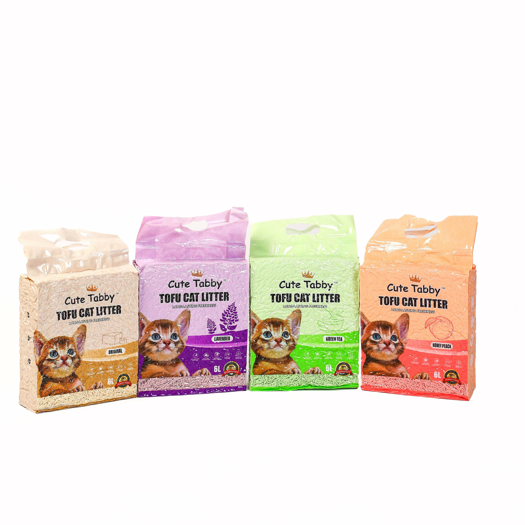 Растительный наполнитель для кошачьего туалета комкующийся премиум А класса без аромата Тофу Cute Tabby 6 л