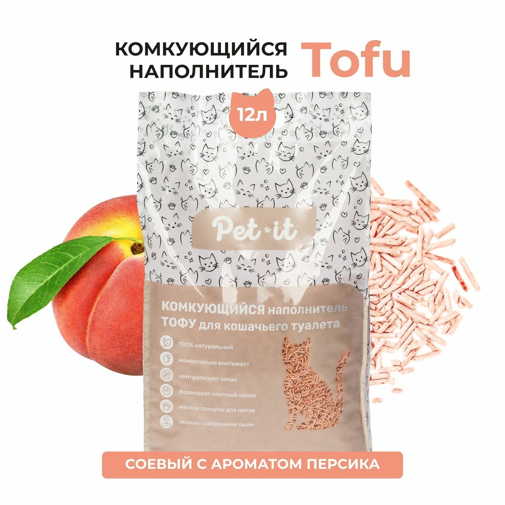 Купить Наполнитель для кошачьего туалета тофу Pet-it соевый с ароматом персика 12 л