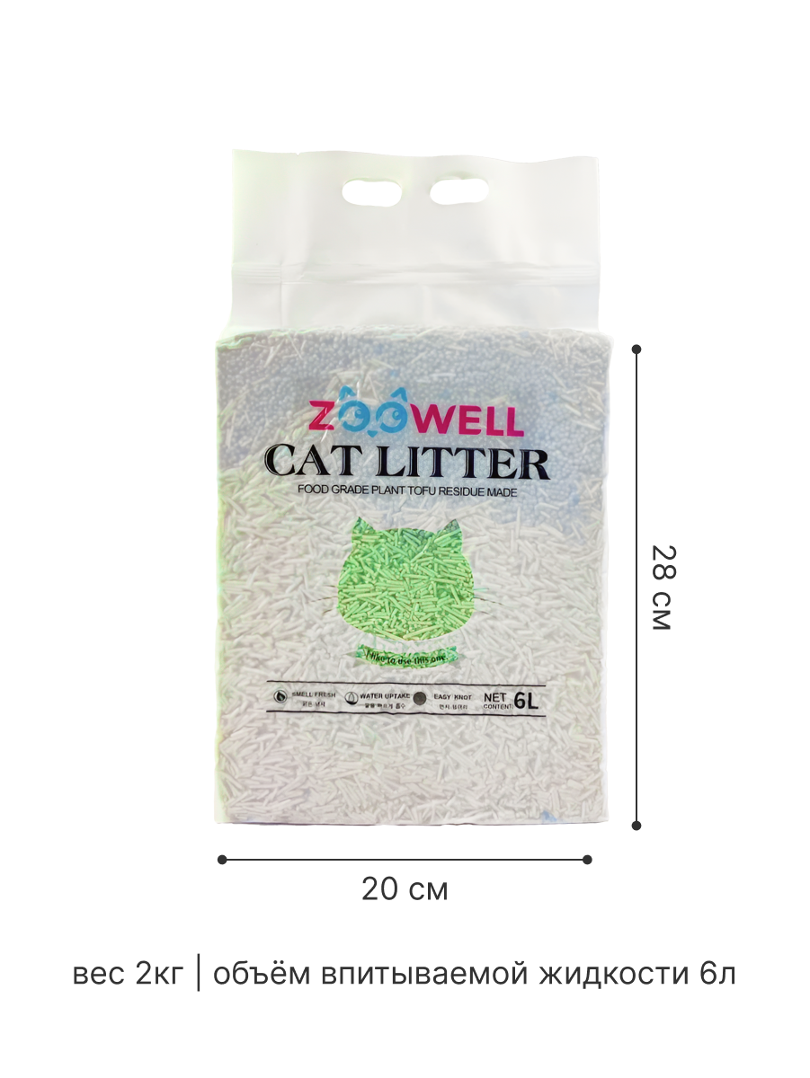 Наполнитель для кошачьего туалета ZooWell Care Mix смешанный 6 л (2 кг) с тофу и активированным углем