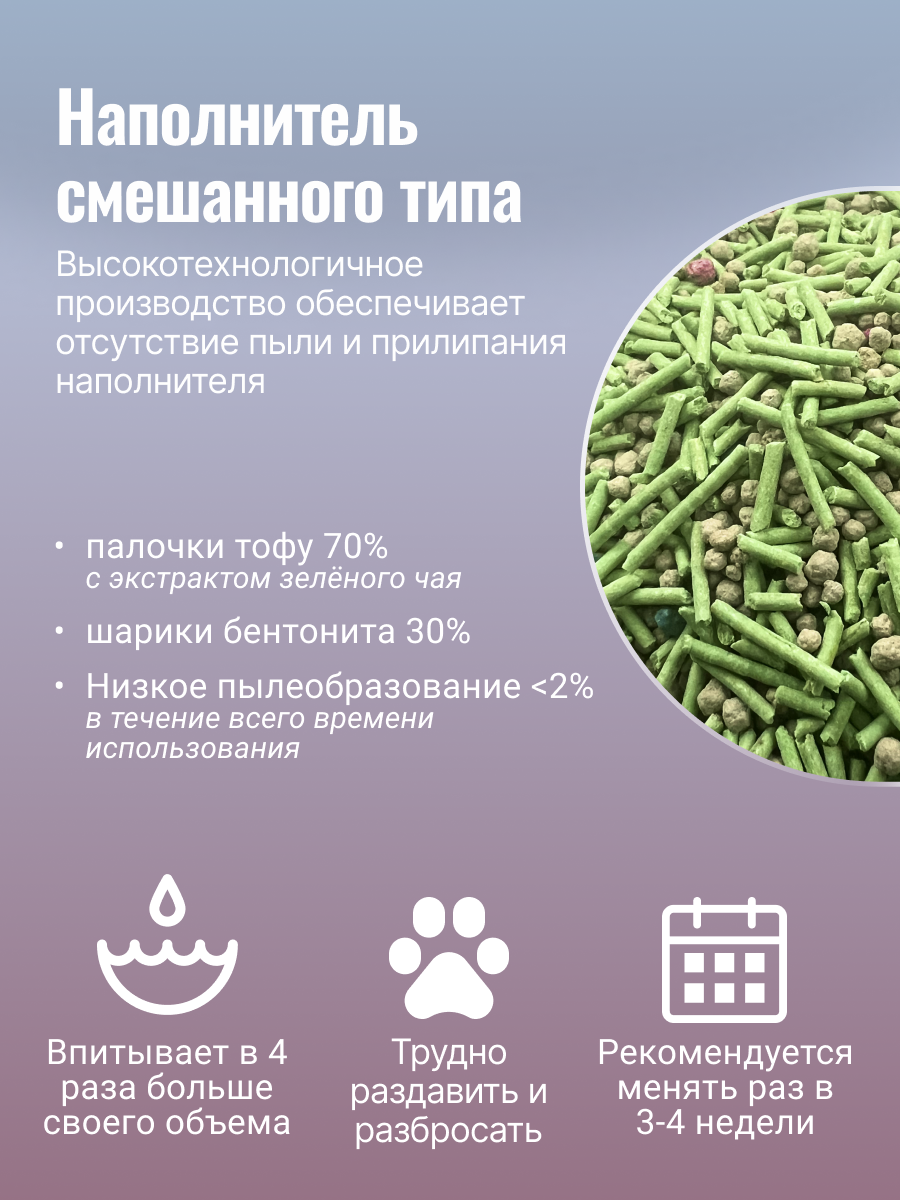СохранитьНаполнитель для кошачьего туалета ZooWell Care Mix смешанный 6 л (2 кг) с экстрактом зеленого чая интересное: