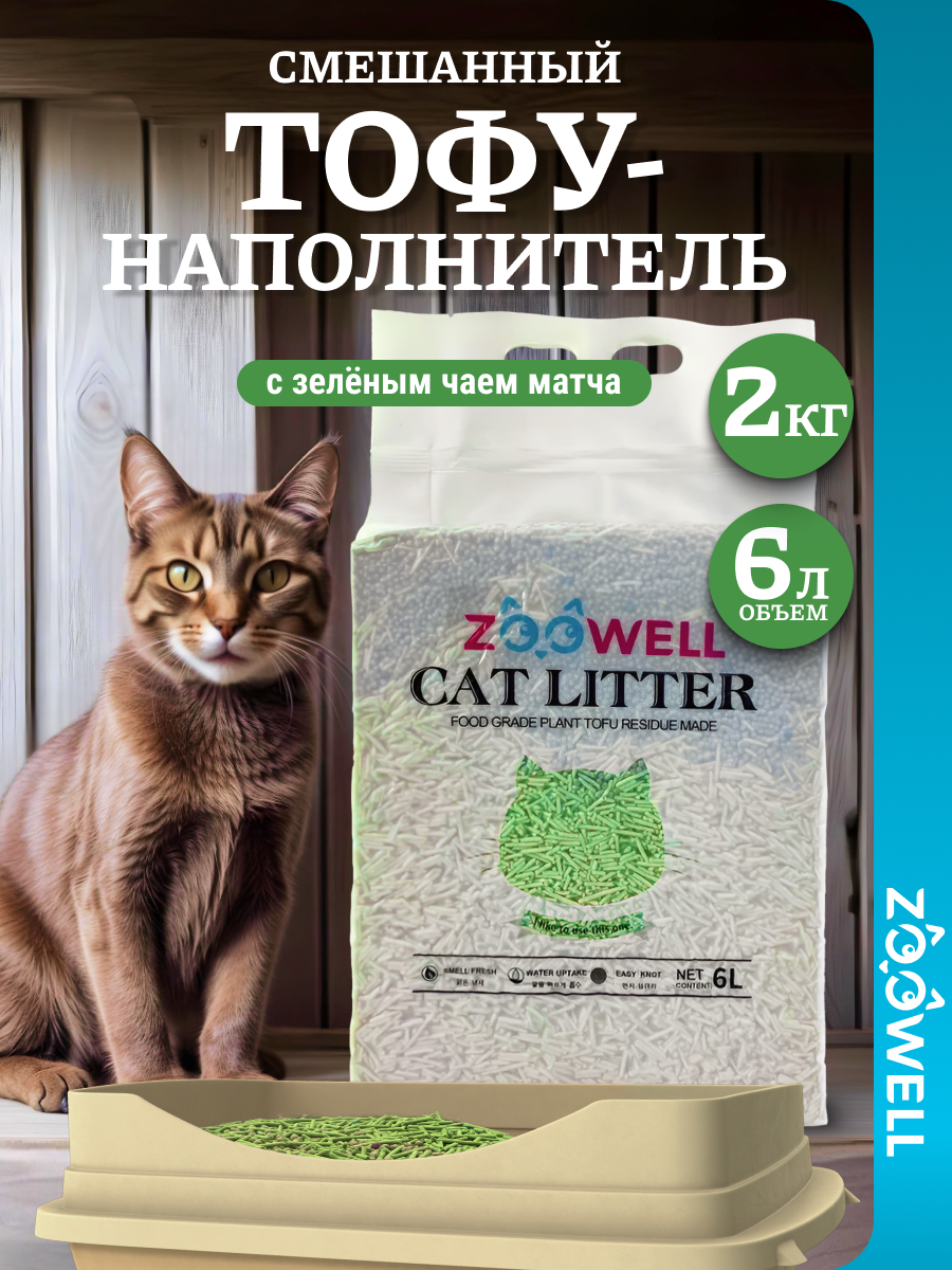 Купить Наполнитель для кошачьего туалета ZooWell Care Mix смешанный 6 л (2 кг) с экстрактом зеленого чая