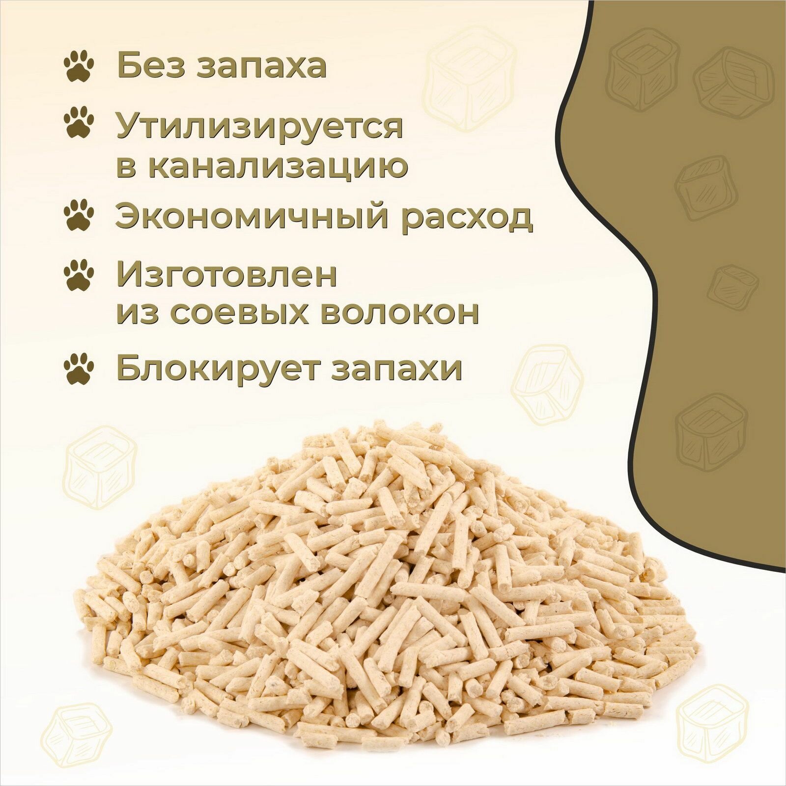 Наполнитель для кошачьего туалета, TOOCATTISH, Оригинал, 20 кг, 48 л, тофу, комкующийся, соевый, смываемый