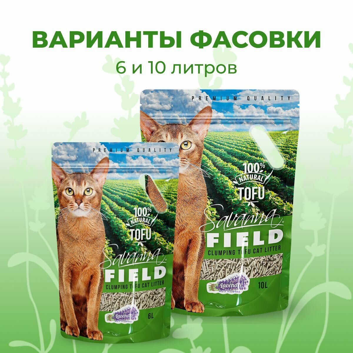 Купить Savanna Field Tofu Растительный комкующийся наполнитель для кошачьего туалета с ароматом лаванды, 6 л