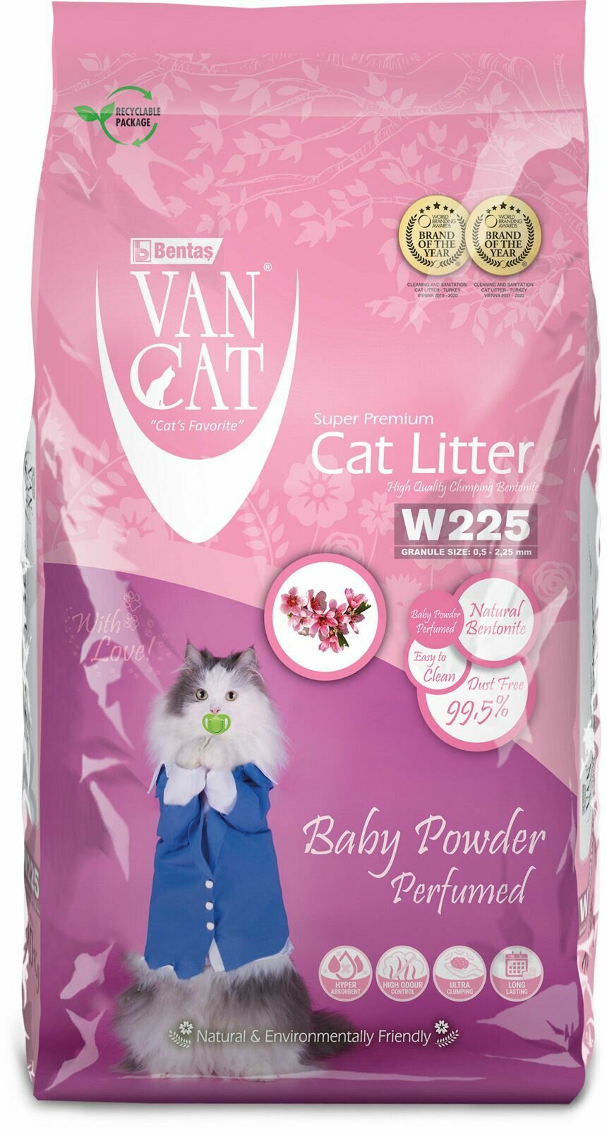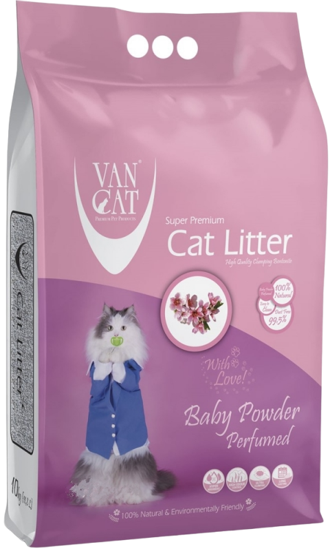Van Cat комкующийся наполнитель с ароматом Детской присыпки, без пыли, бентонит, пакет, (Baby Powder Perfumed), 10 кг