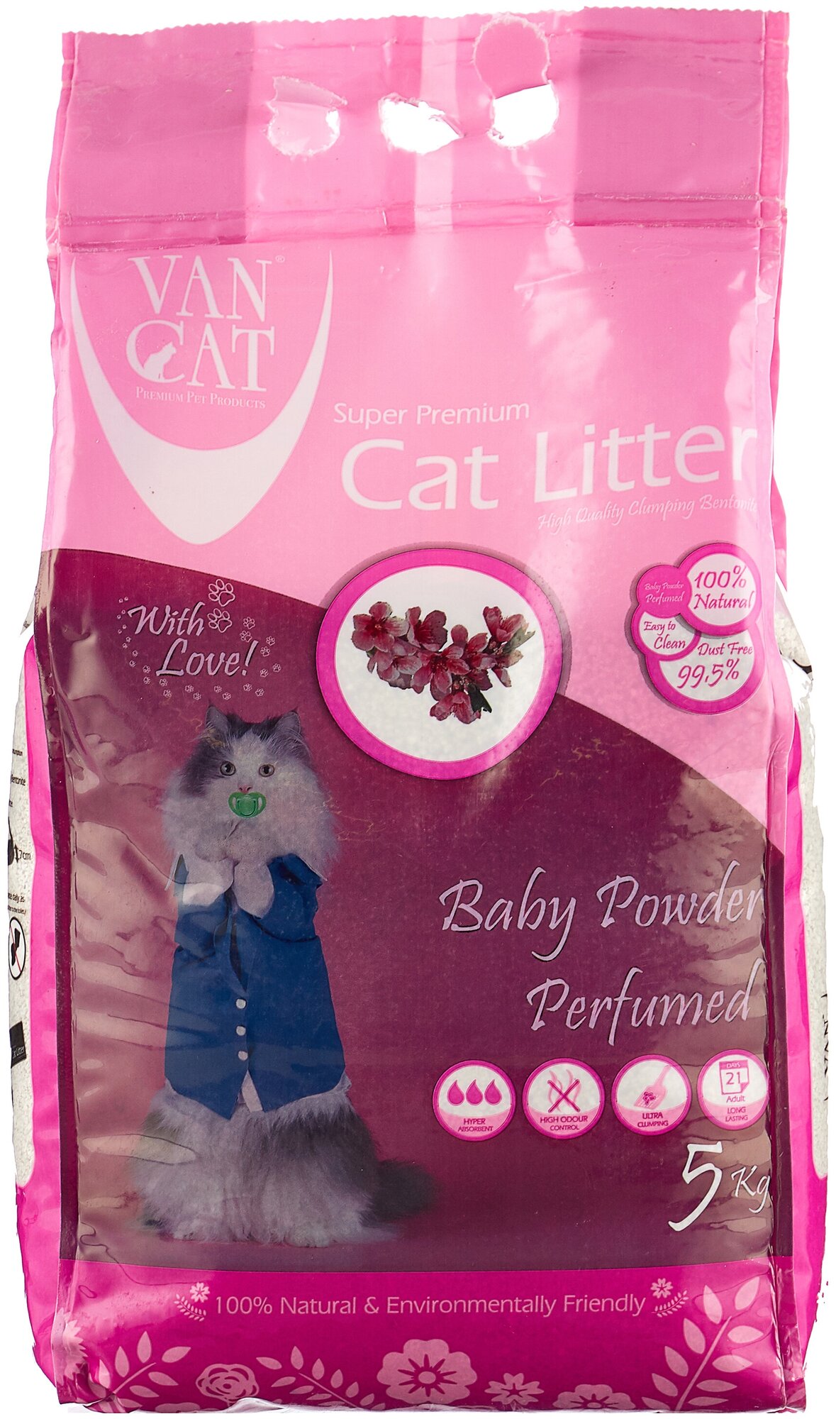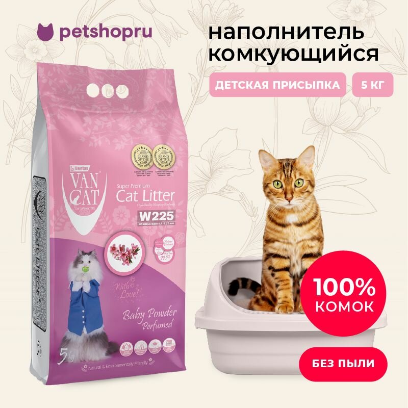 Van Cat комкующийся наполнитель с ароматом Детской присыпки, без пыли, бентонит, пакет, (Baby Powder Perfumed), 5 кг интересное: