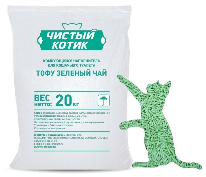 Купить Наполнитель комкующийся "Чистый котик" тофу зелёный чай, 20 кг (45 л.)