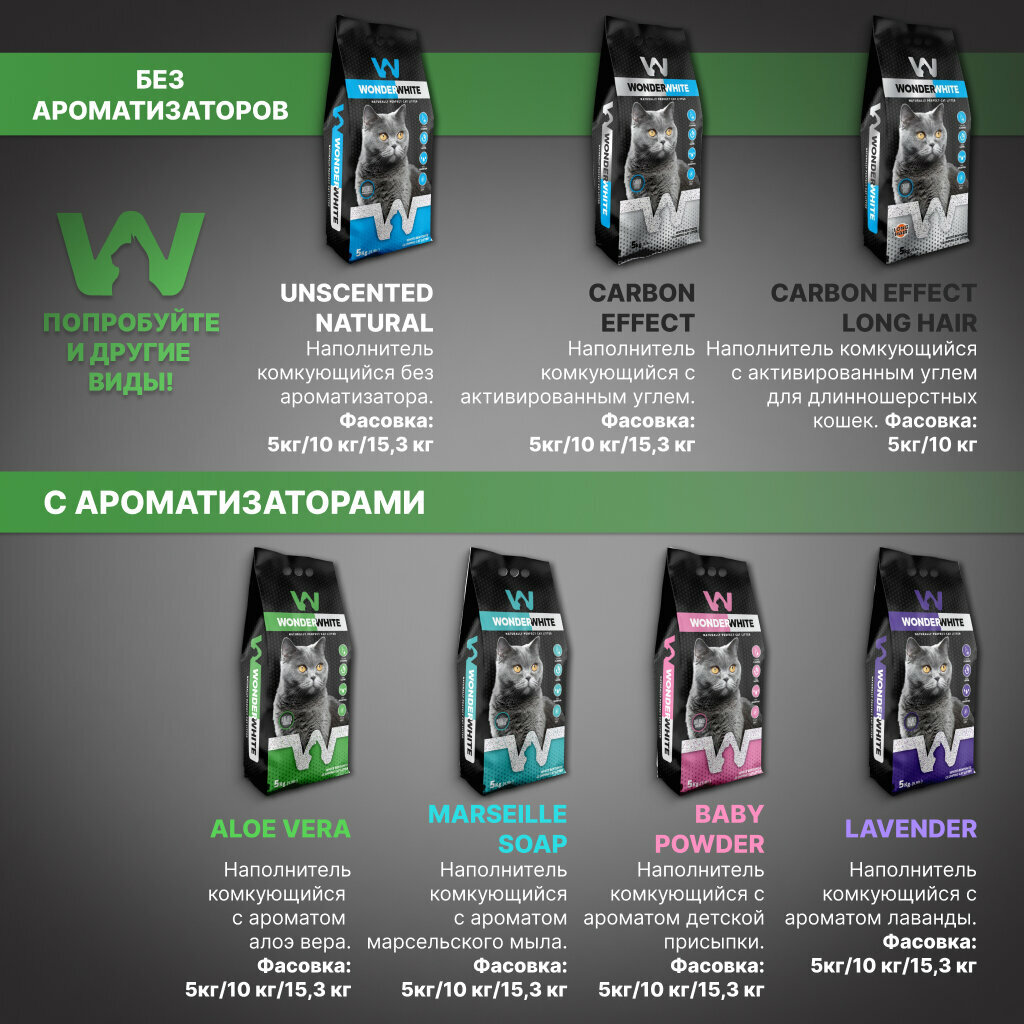 WONDER WHITE MARSEILLE SOAP наполнитель комкующийся для туалета кошек с ароматом марсельского мыла (10 кг)