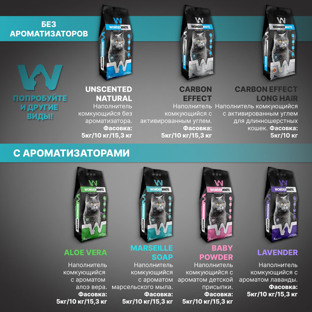 СохранитьWONDER WHITE Наполнитель комкующийся c ароматом марсельского мыла 5кг интересное: