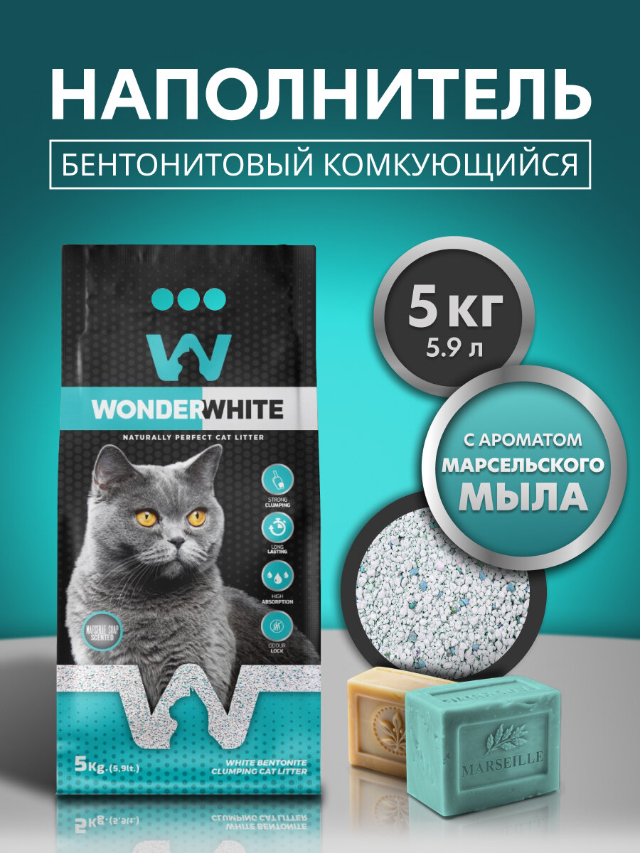 Купить WONDER WHITE Наполнитель комкующийся c ароматом марсельского мыла 5кг
