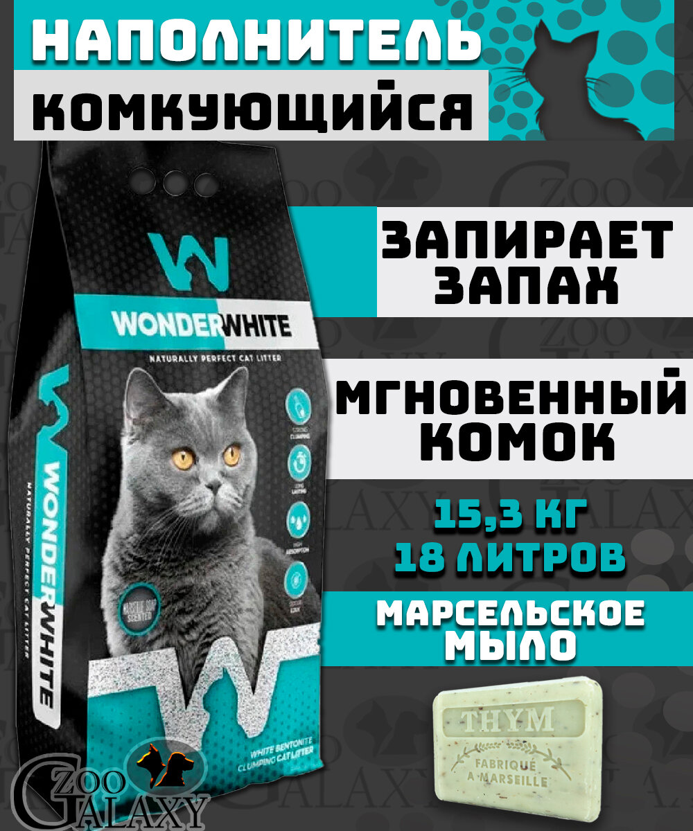 Купить WONDER WHITE Наполнитель комкующийся c марсельского мыла 15,3кг