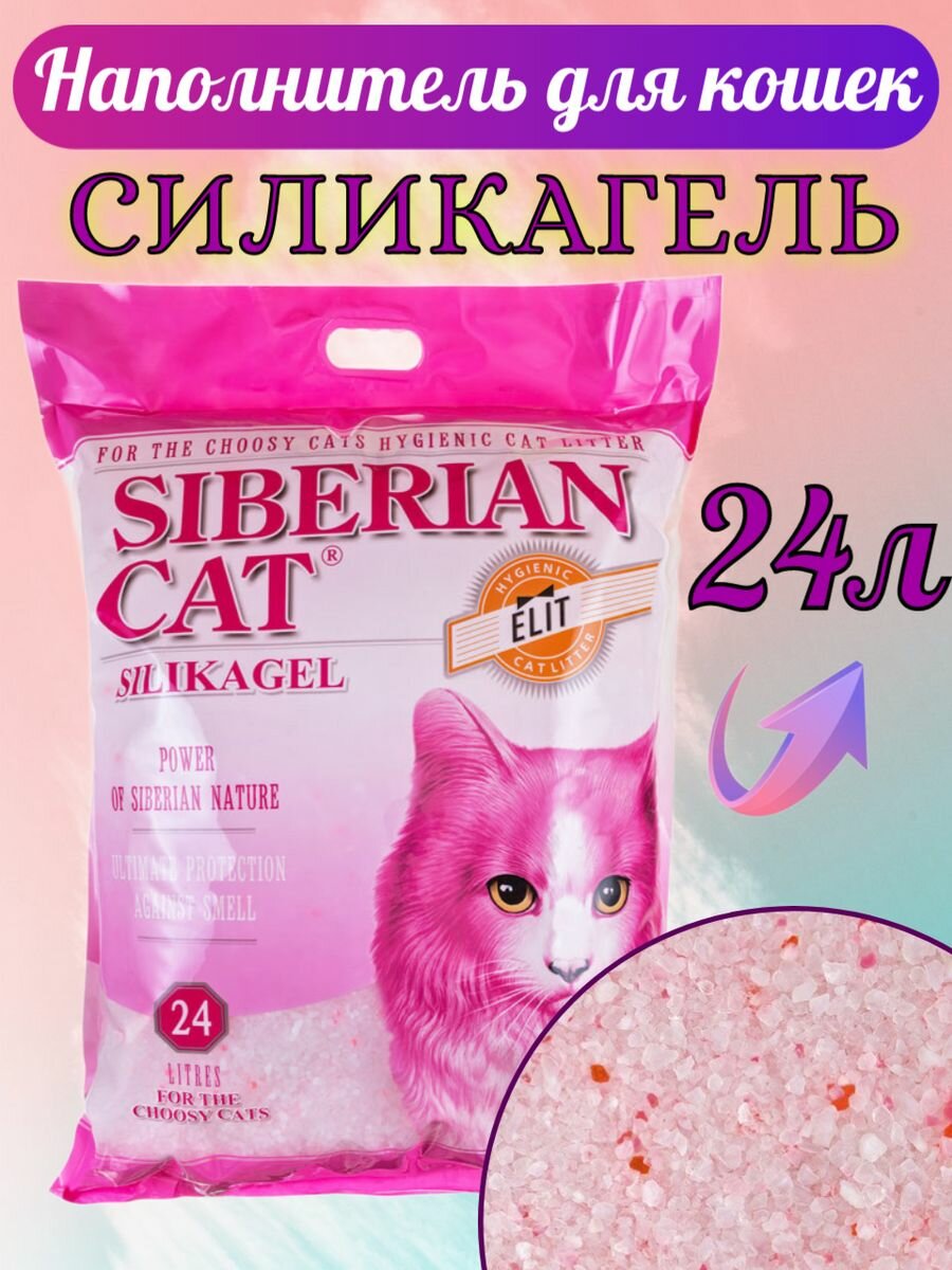 Наполнитель для кошачьего туалета 16л Элита СИБИРСКАЯ КОШКА силикагелевый розовые гранулы